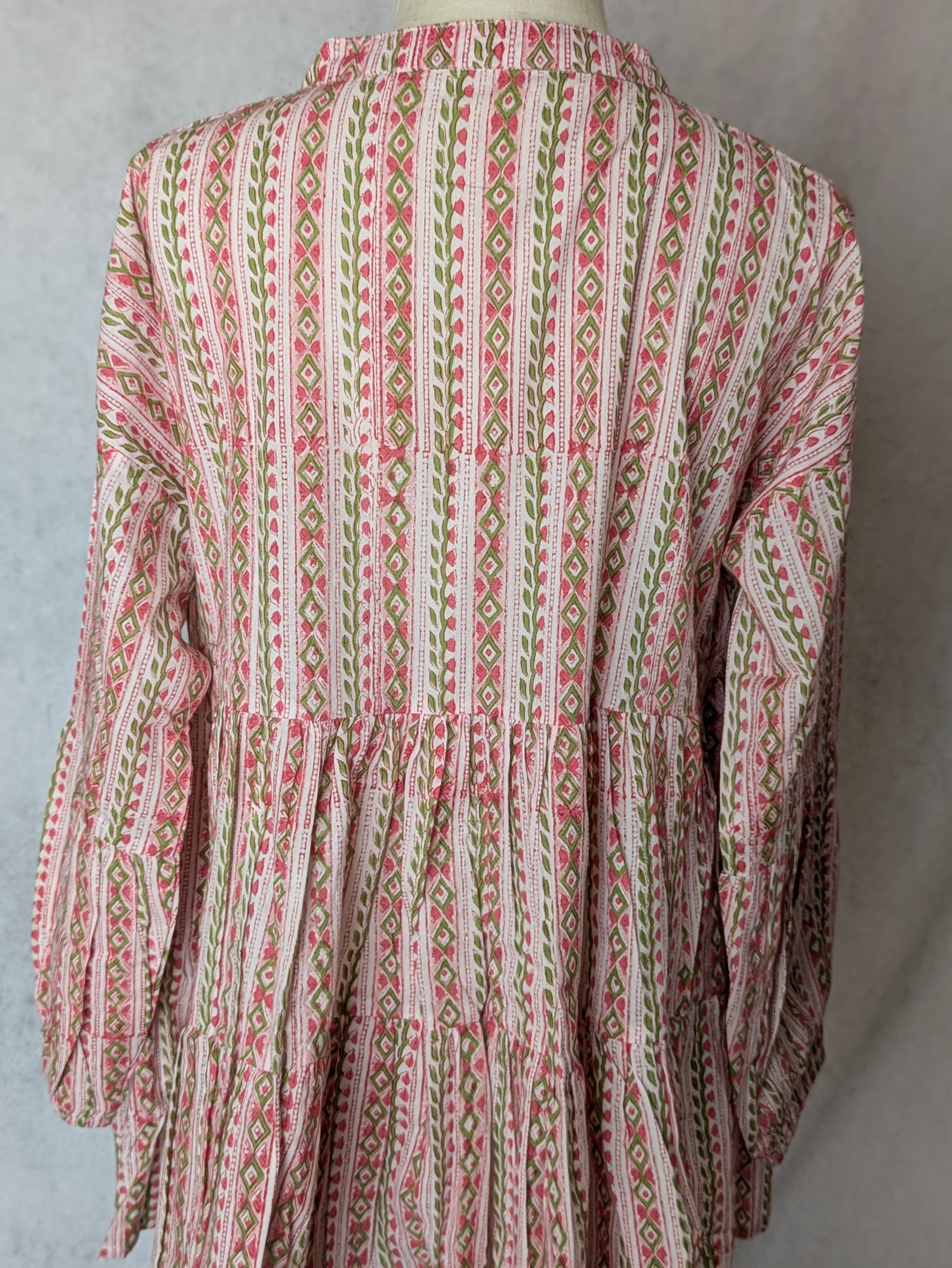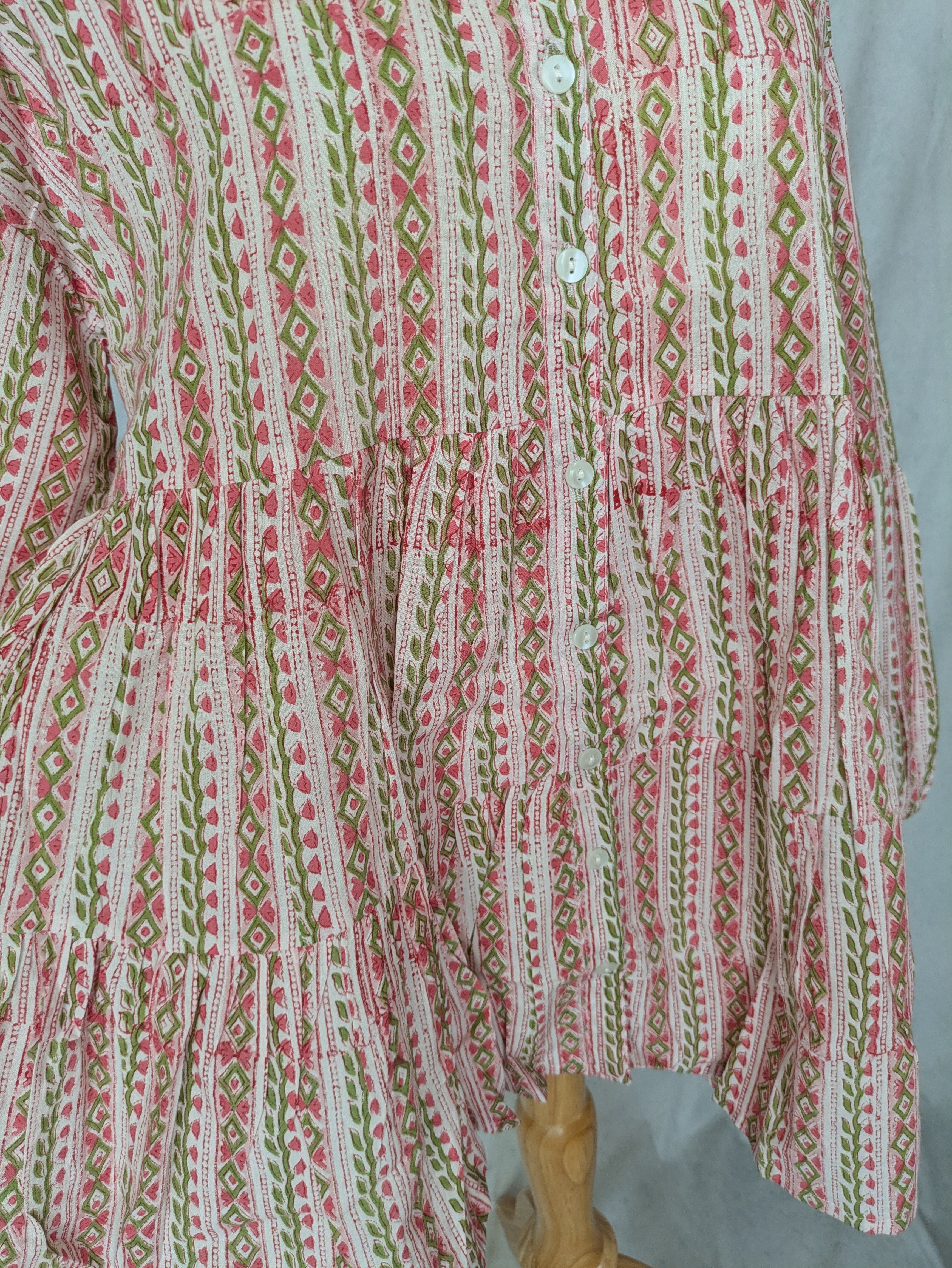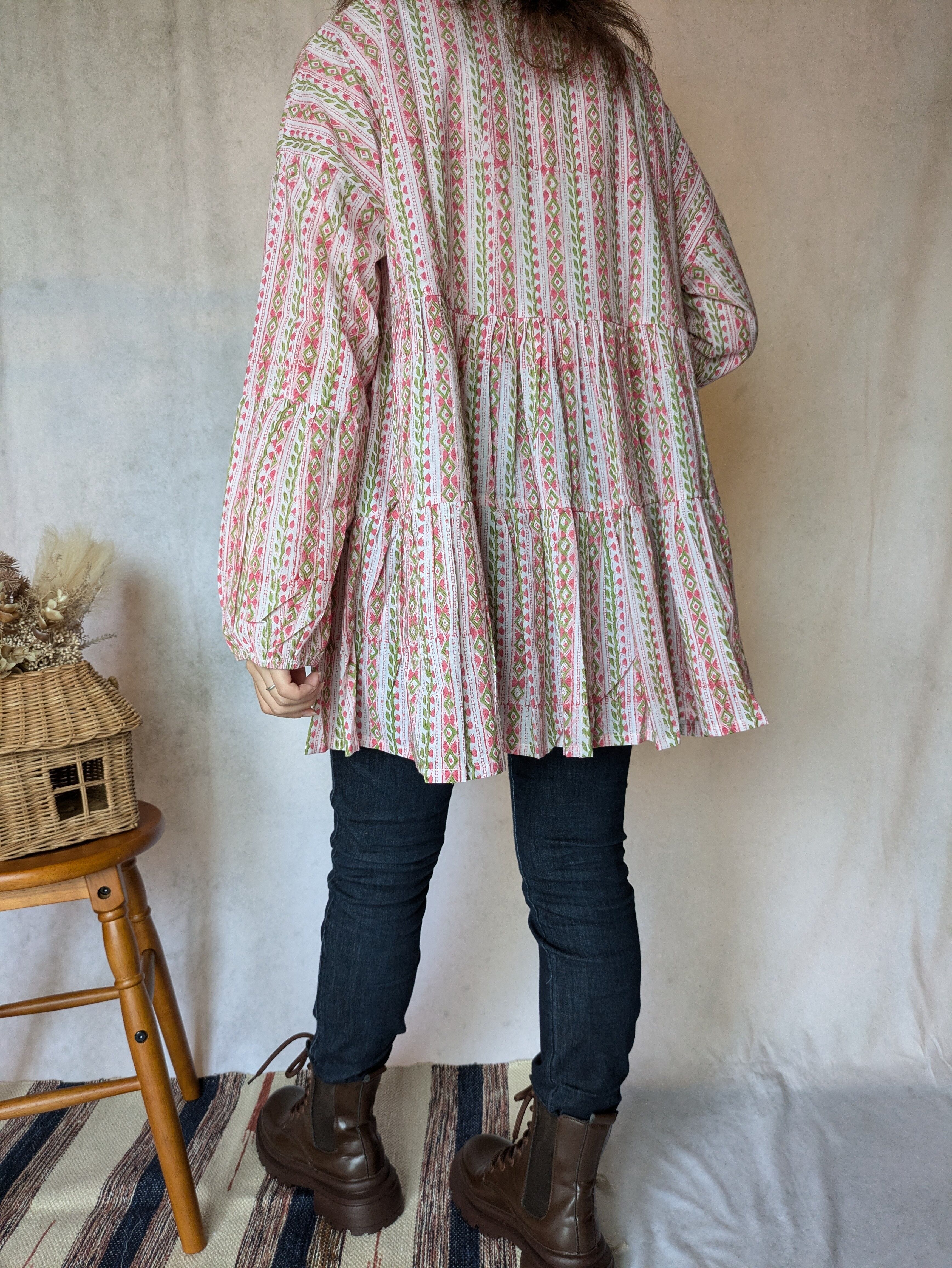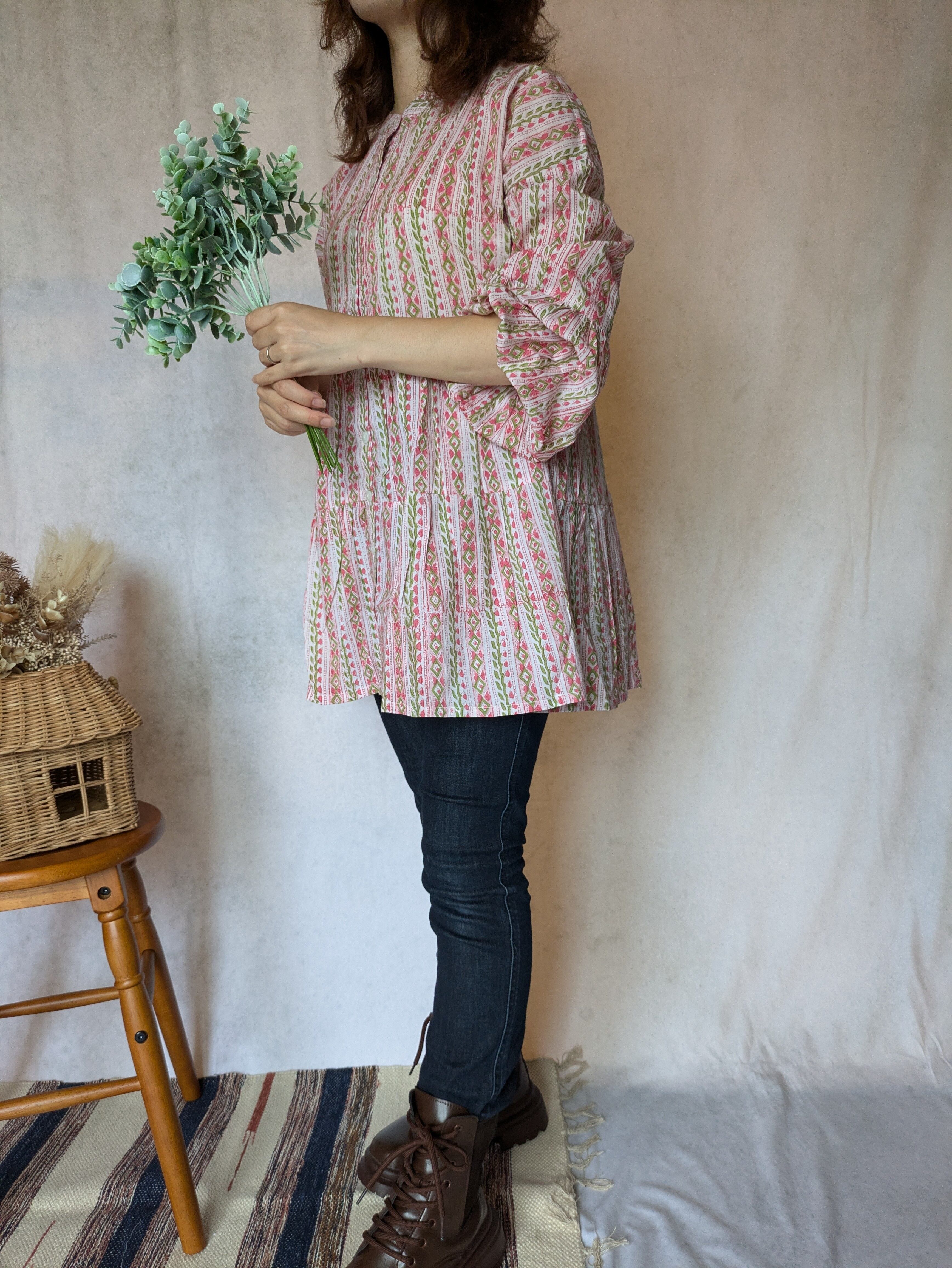 こちらは、インドの伝統工芸であるハンドブロックプリントで作られたスカートです。