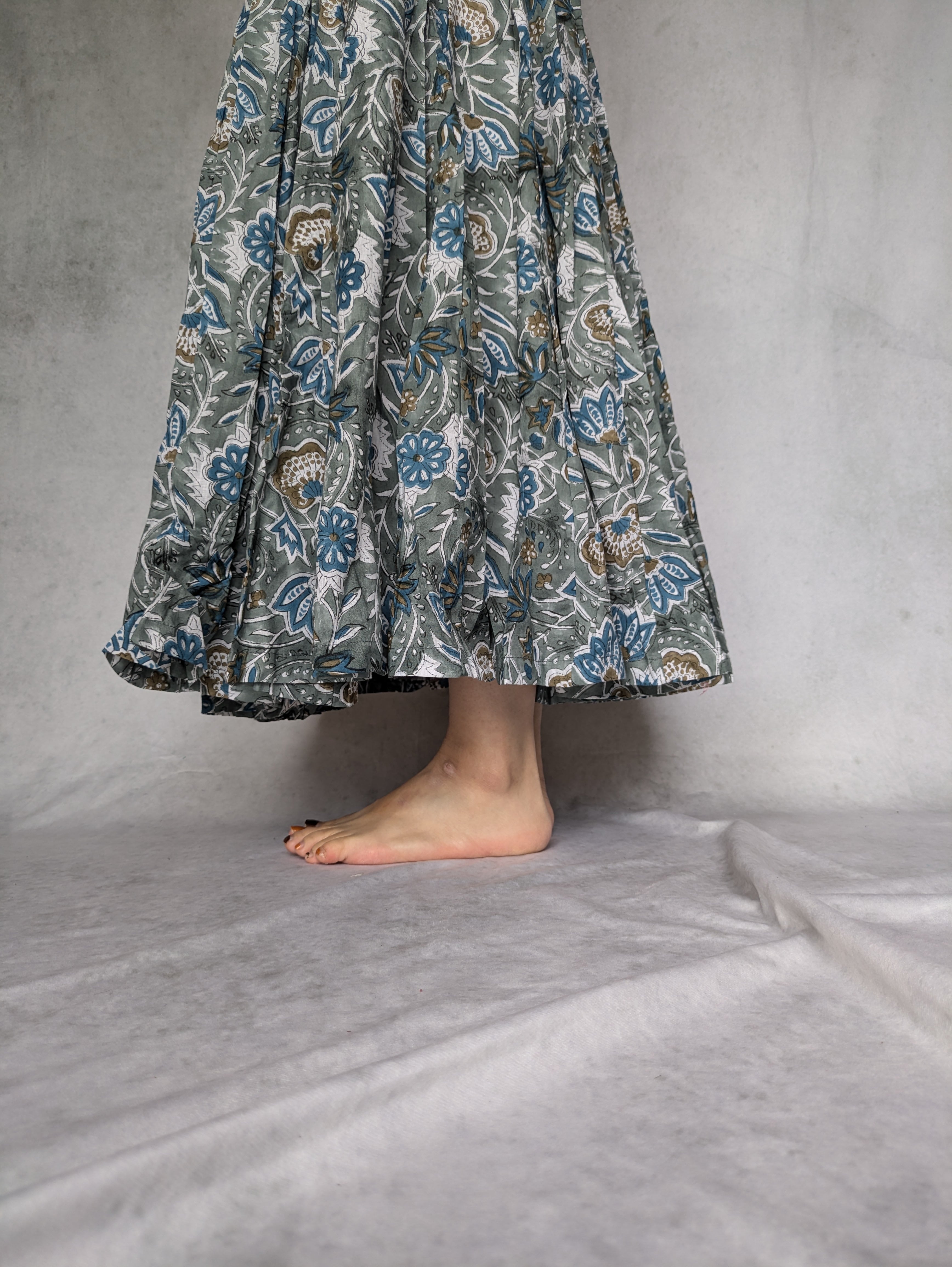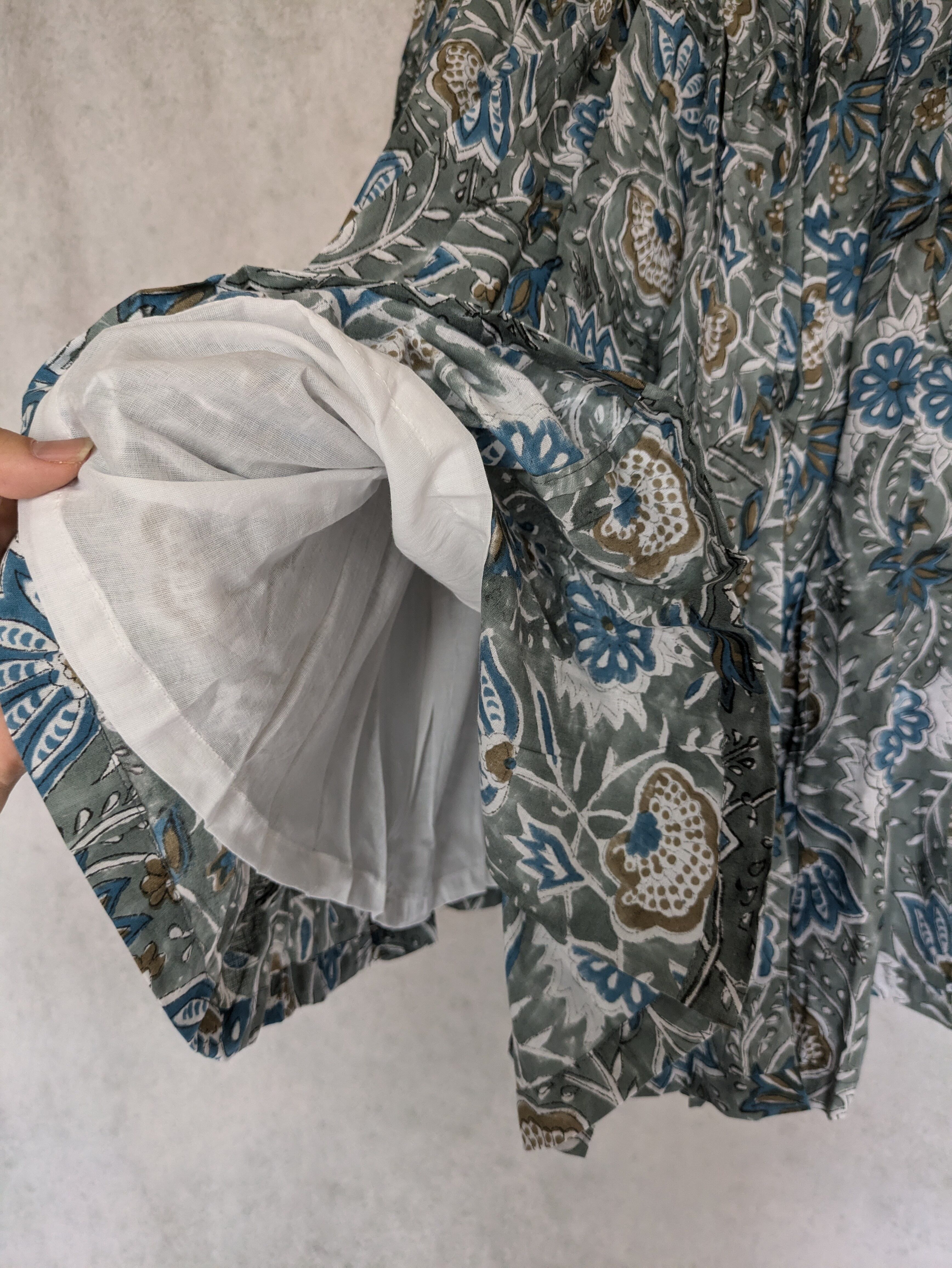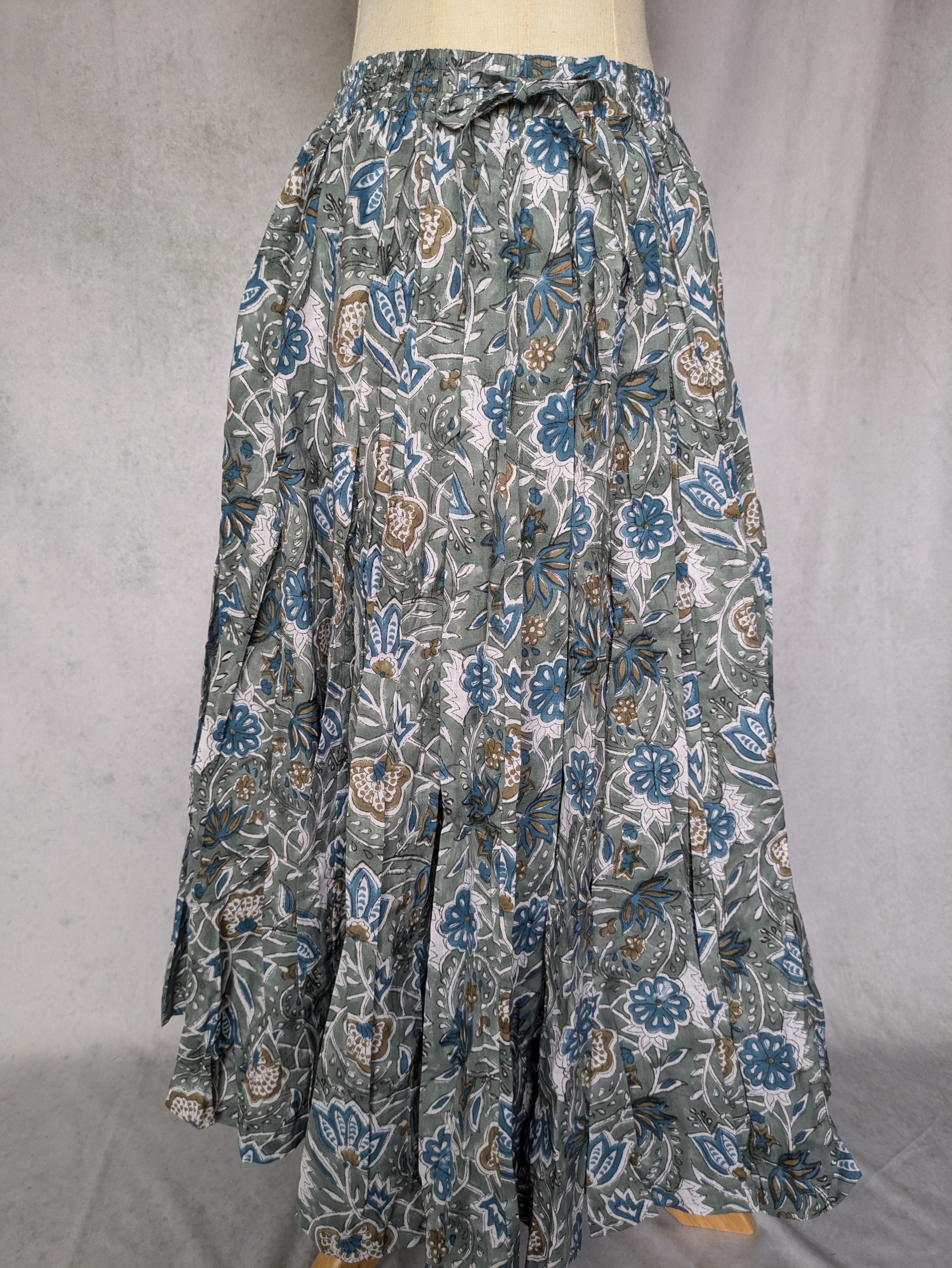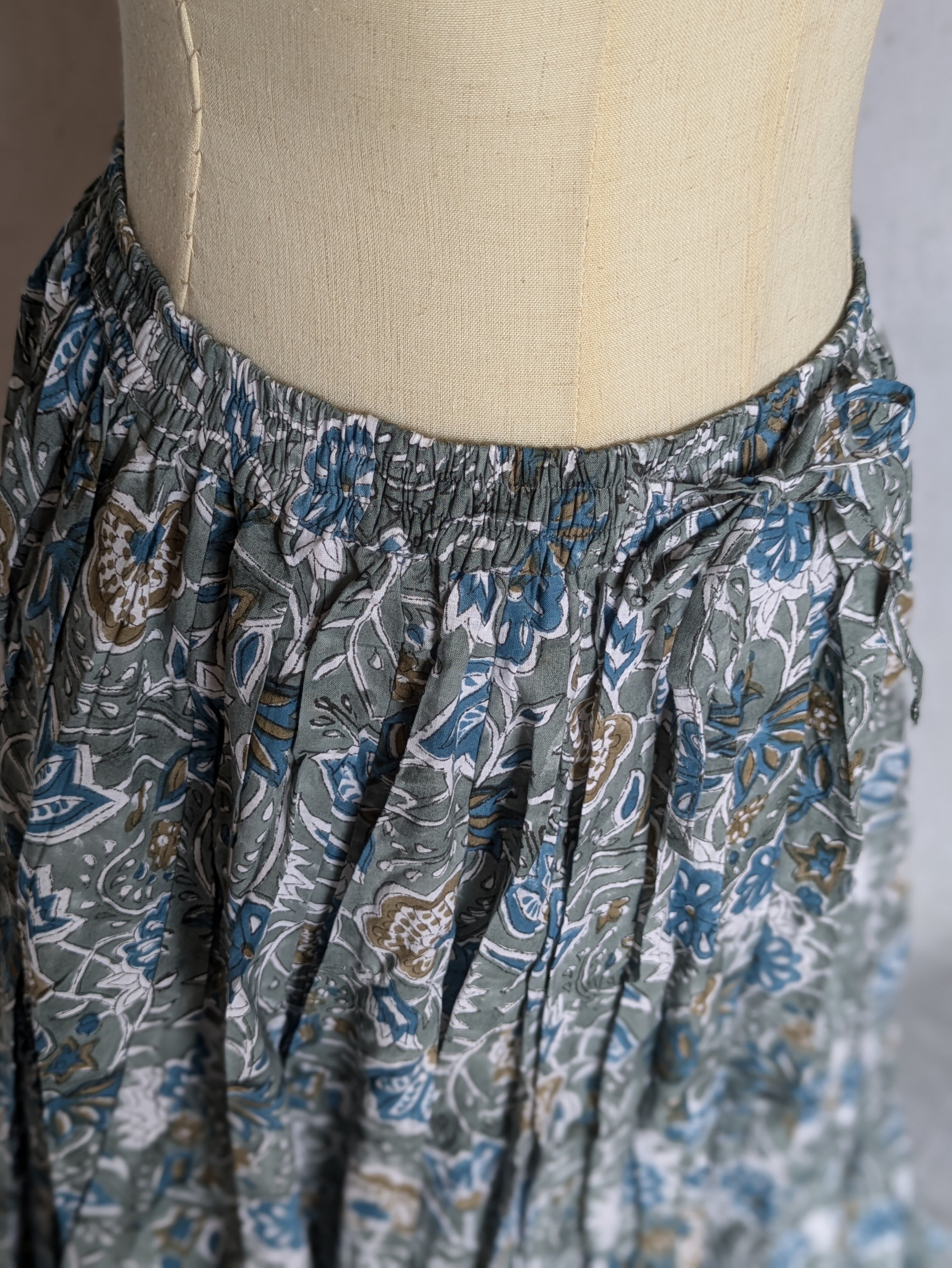 こちらは、インドの伝統工芸であるハンドブロックプリントで作られたスカートです。