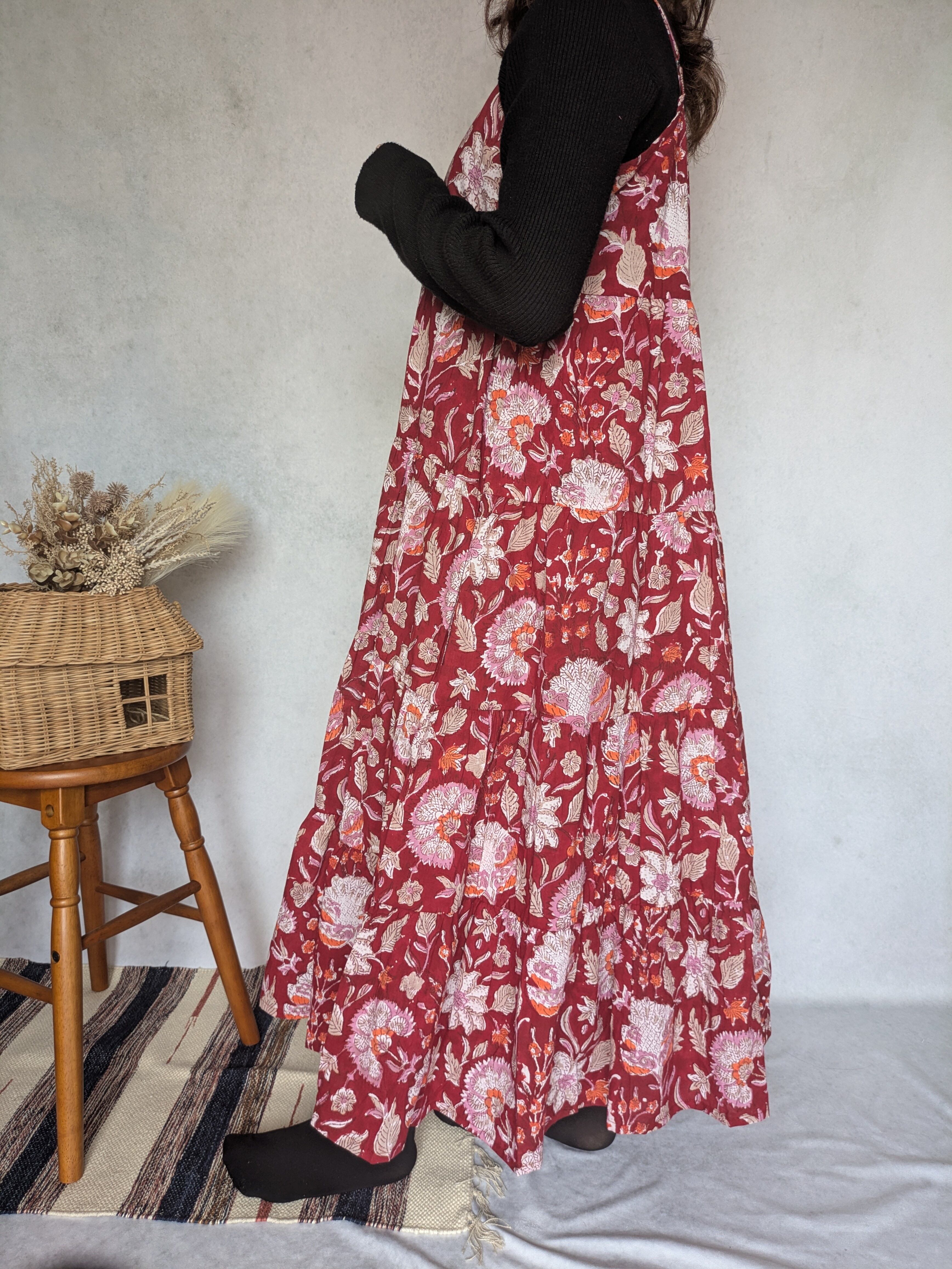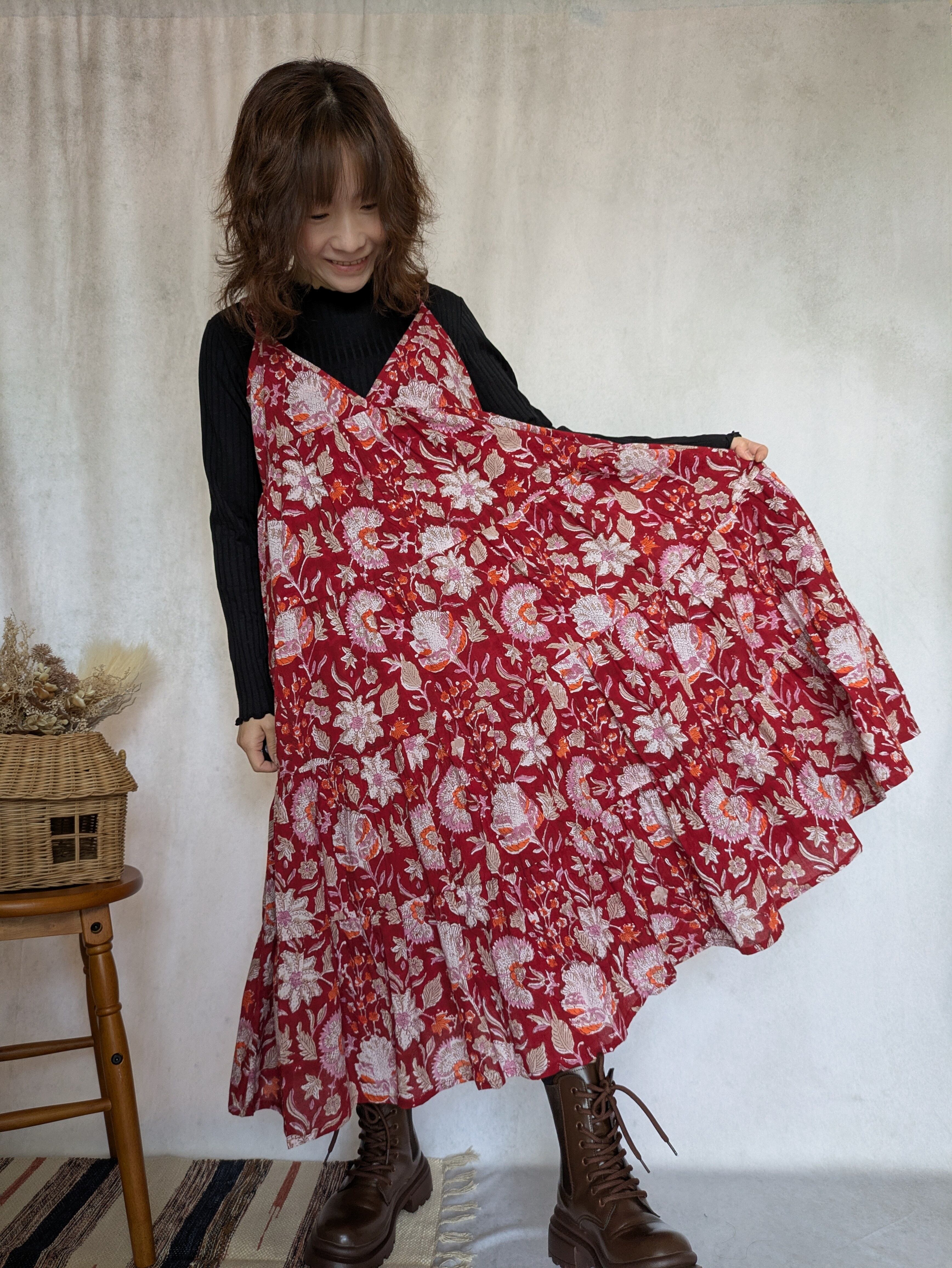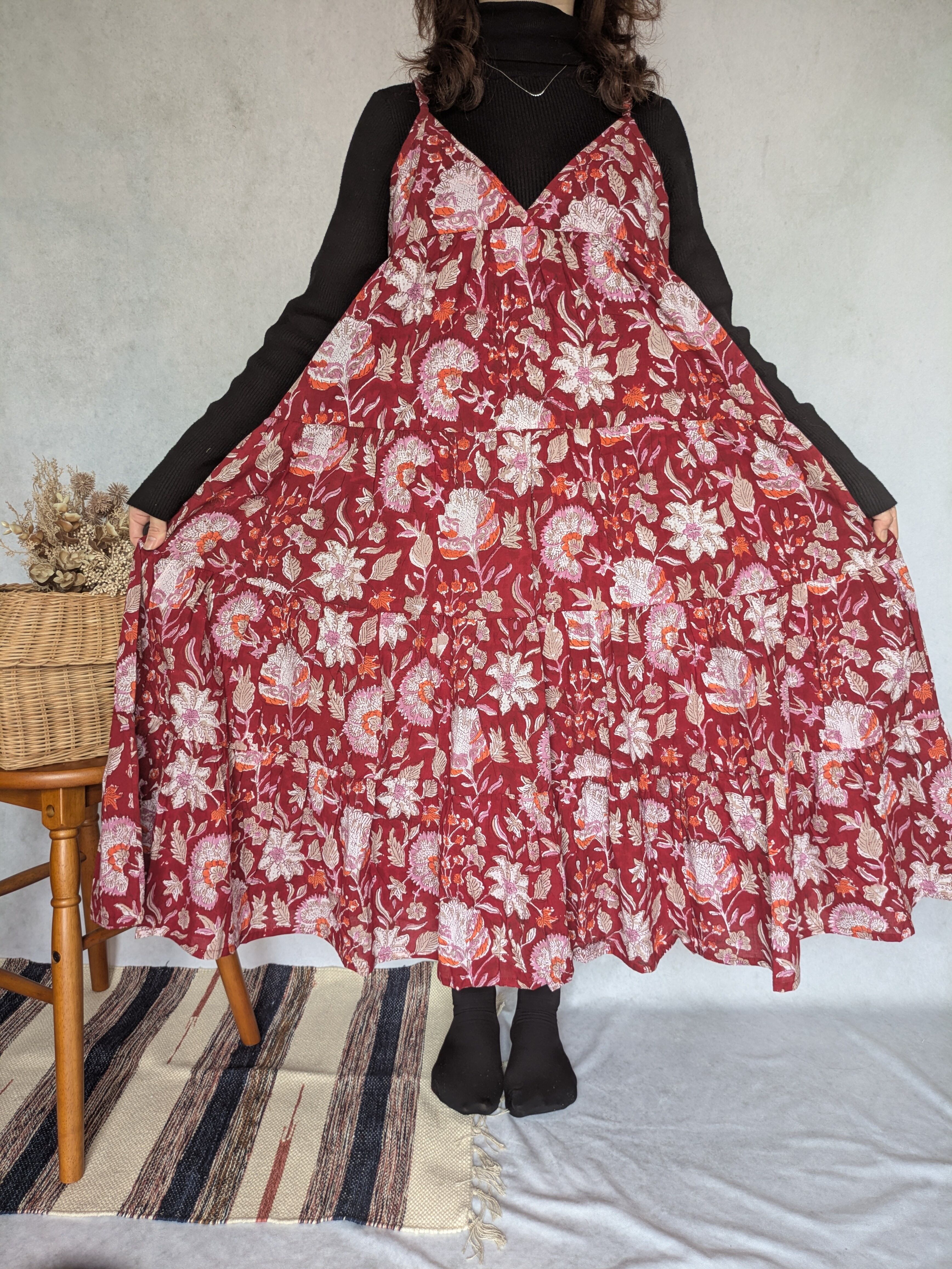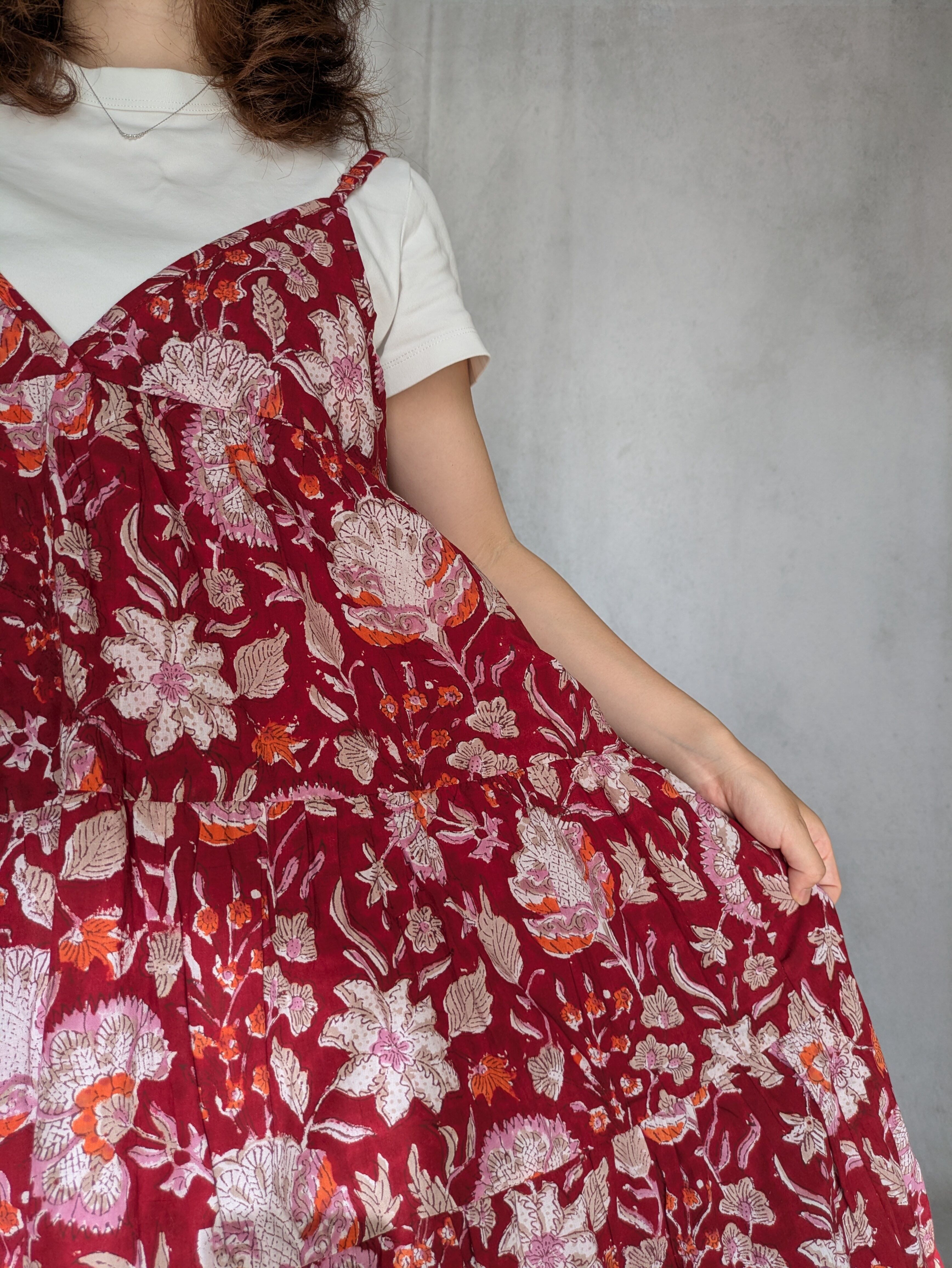 こちらは、インドの伝統工芸であるハンドブロックプリントで作られたワンピースです。