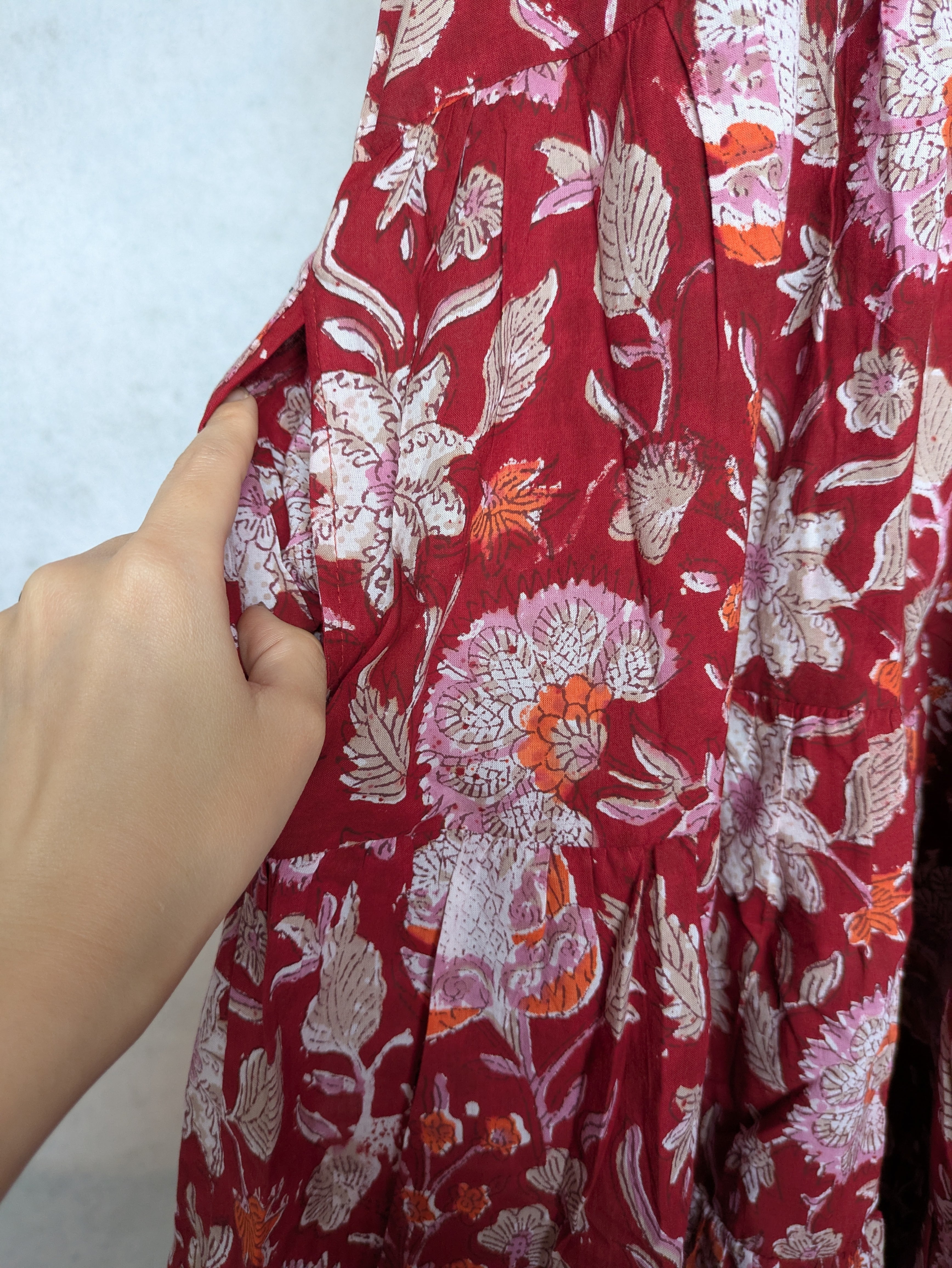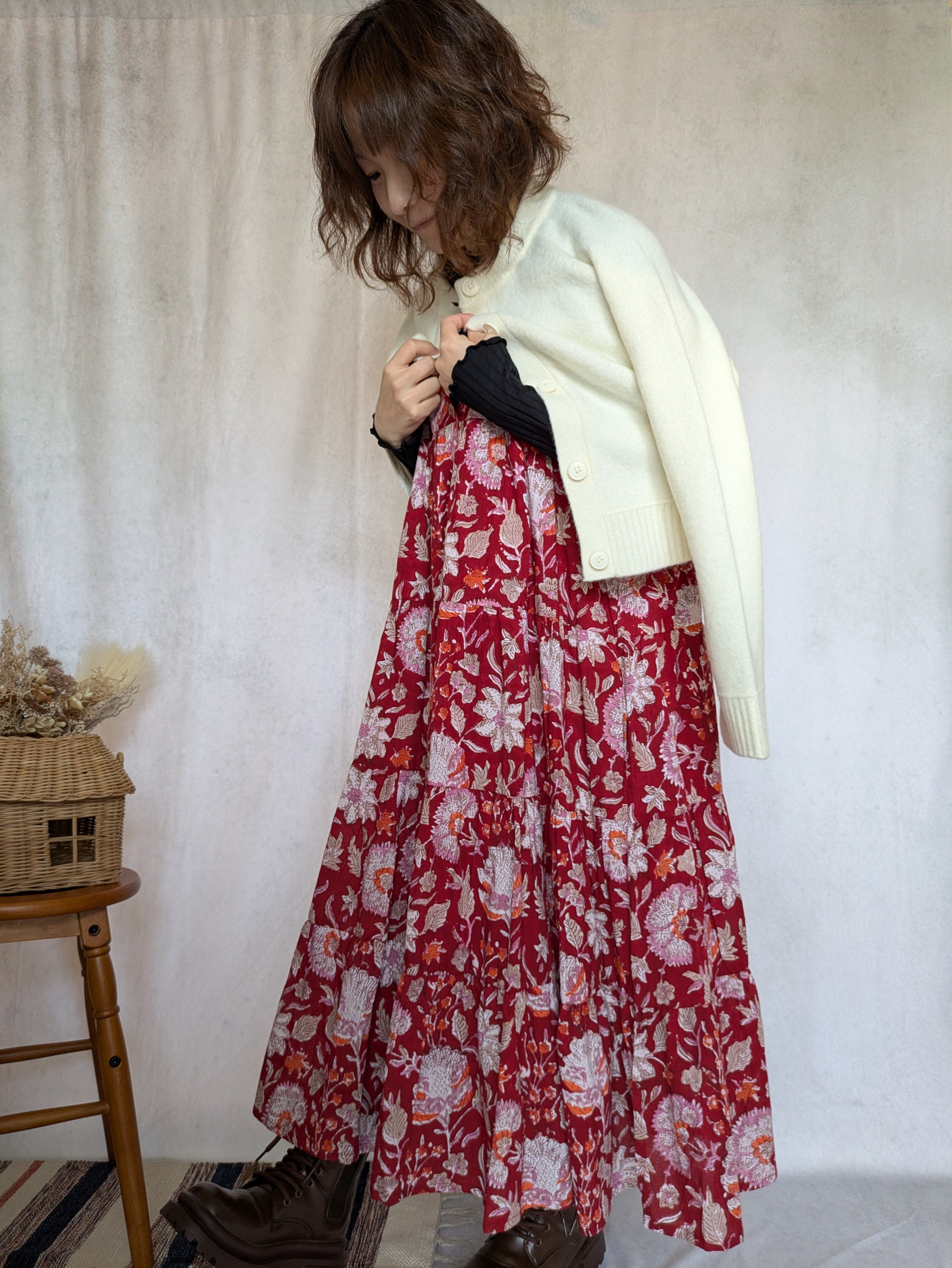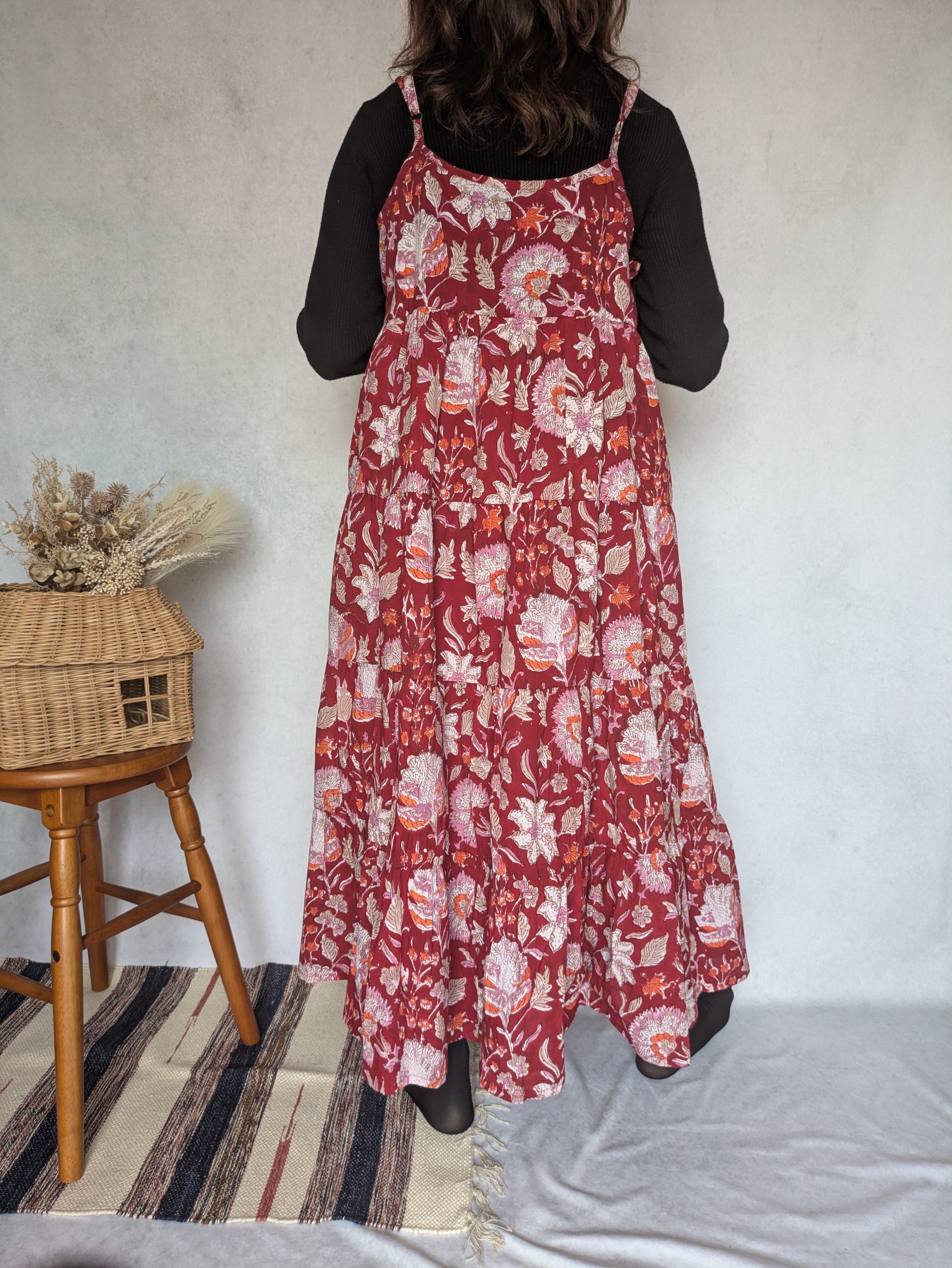 こちらは、インドの伝統工芸であるハンドブロックプリントで作られたワンピースです。