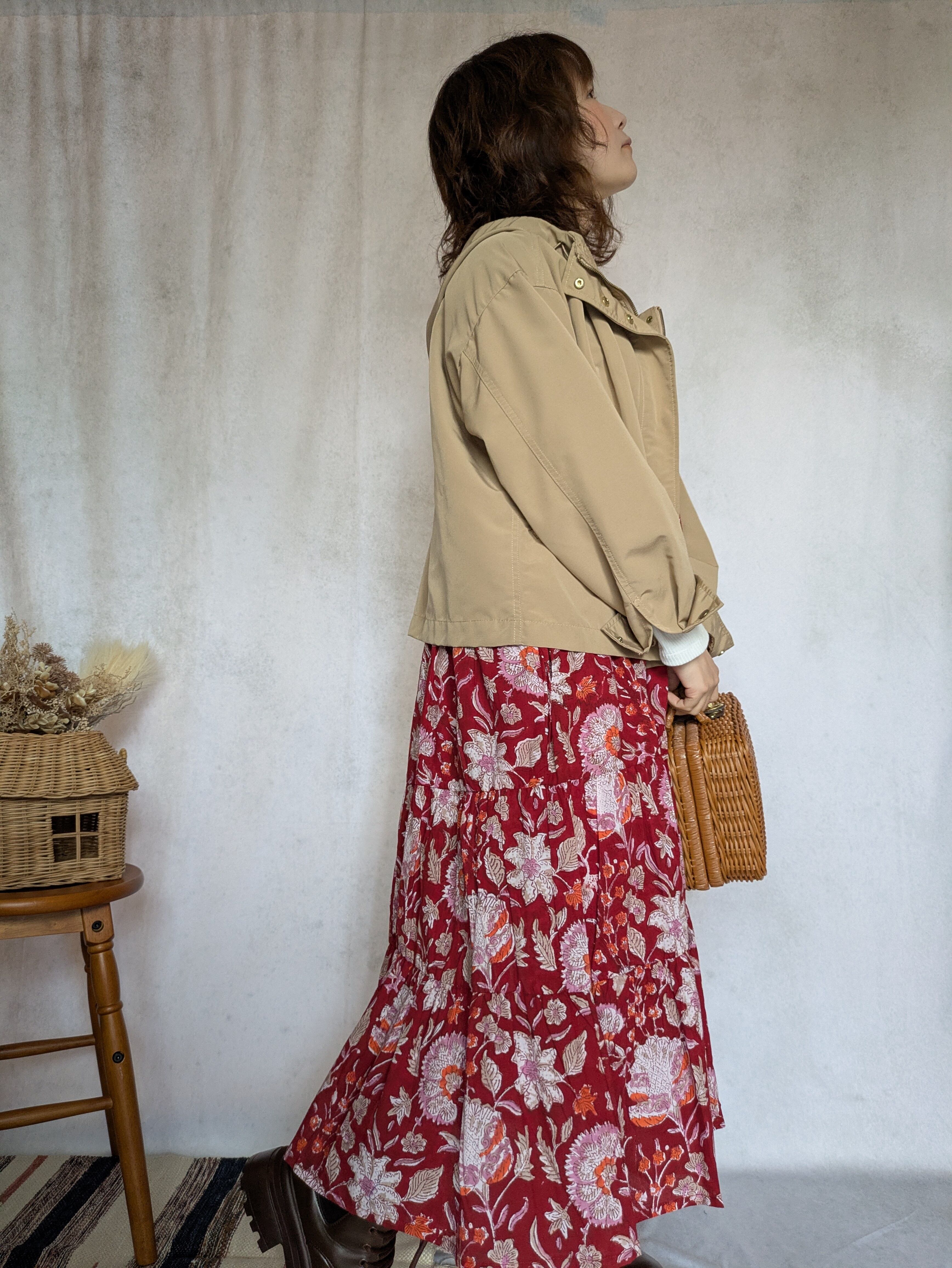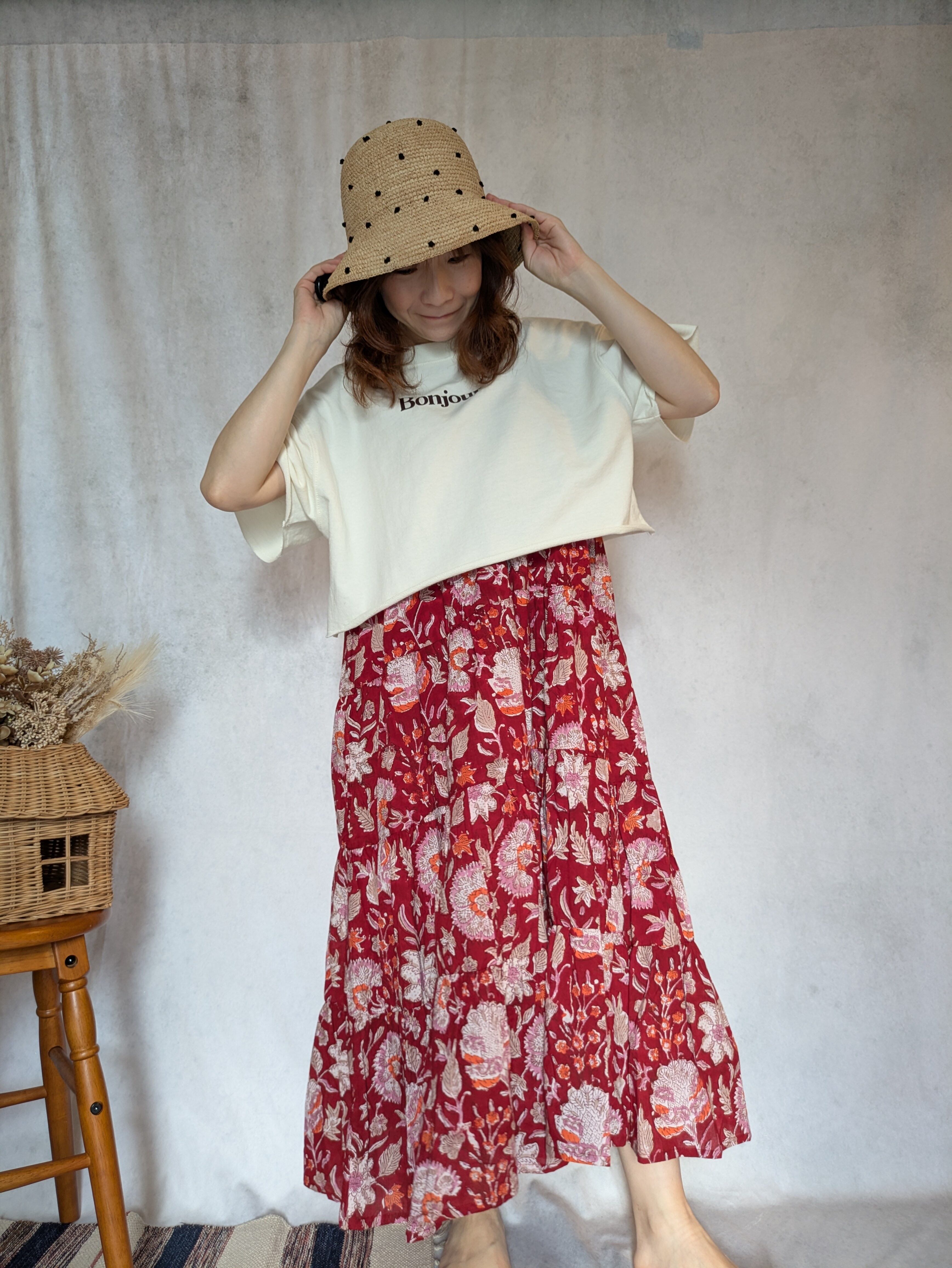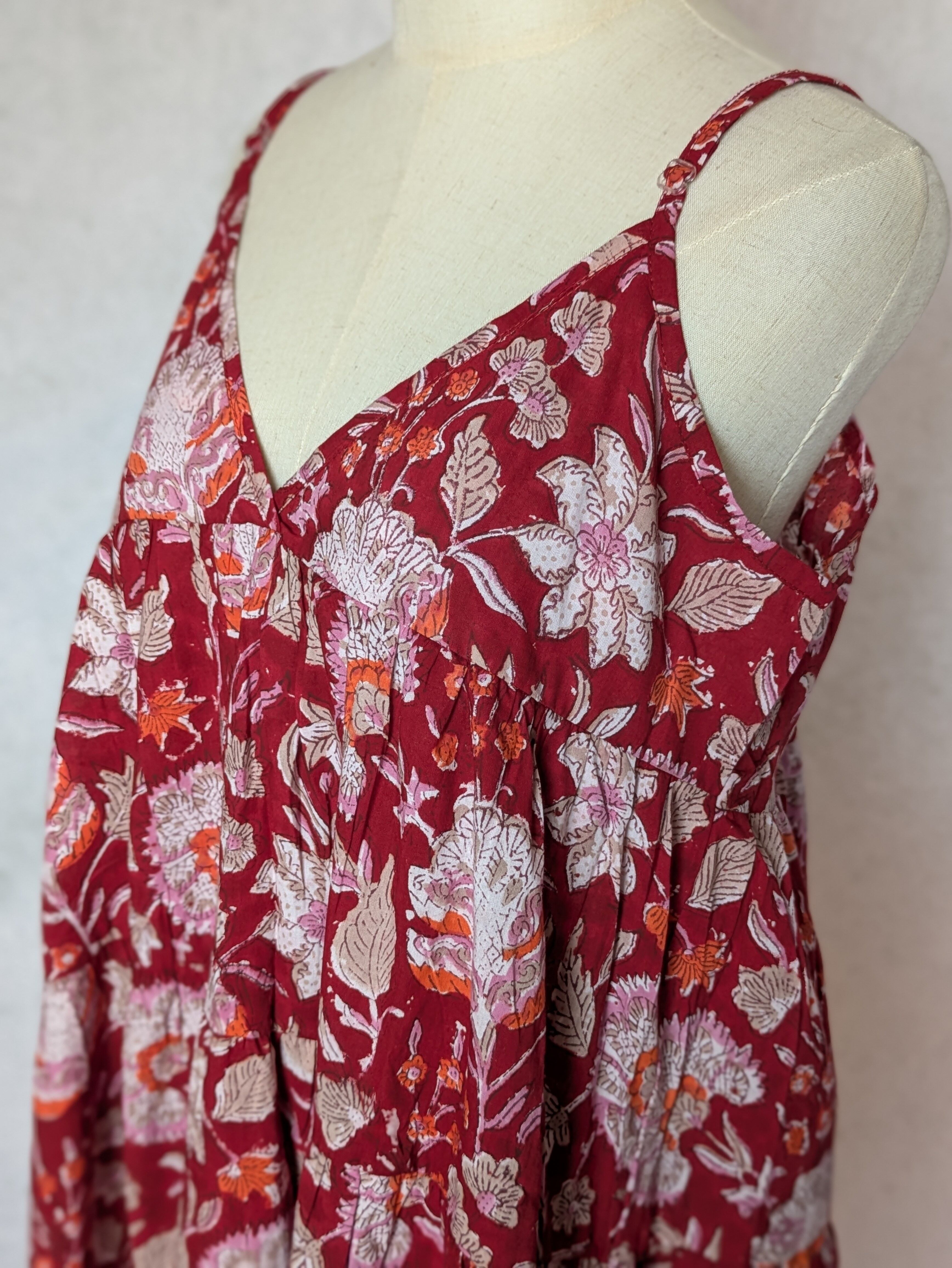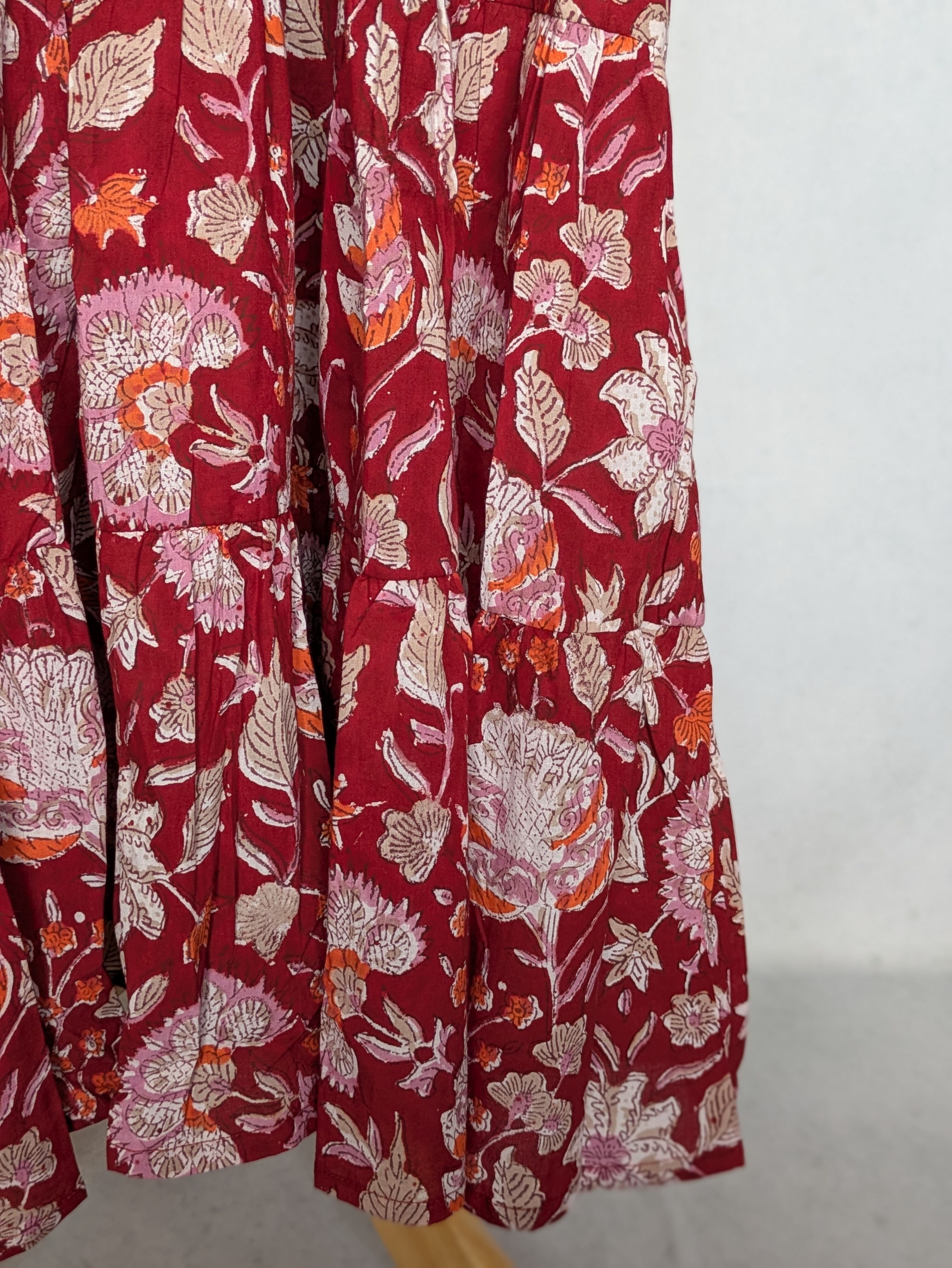 こちらは、インドの伝統工芸であるハンドブロックプリントで作られたワンピースです。
