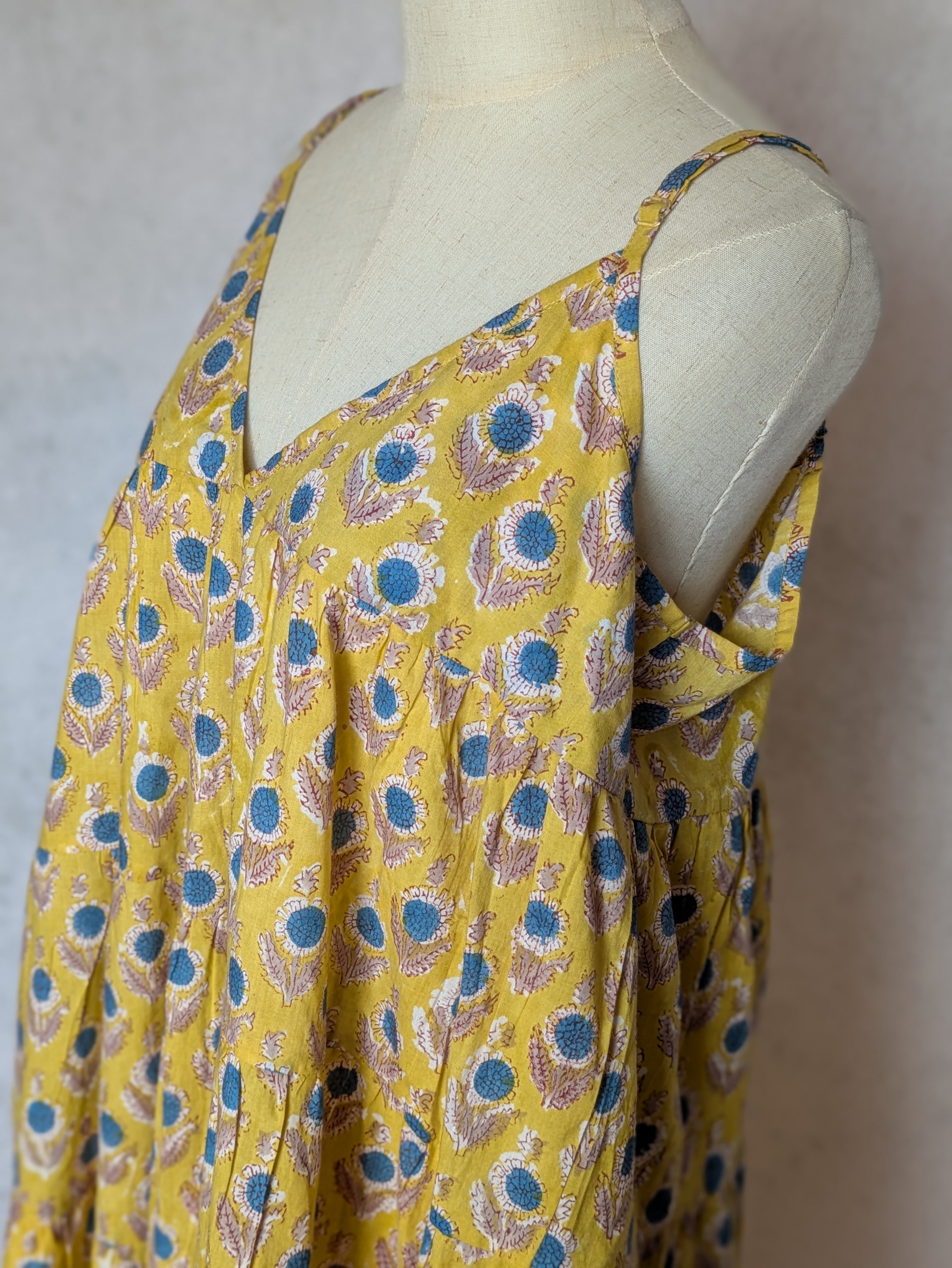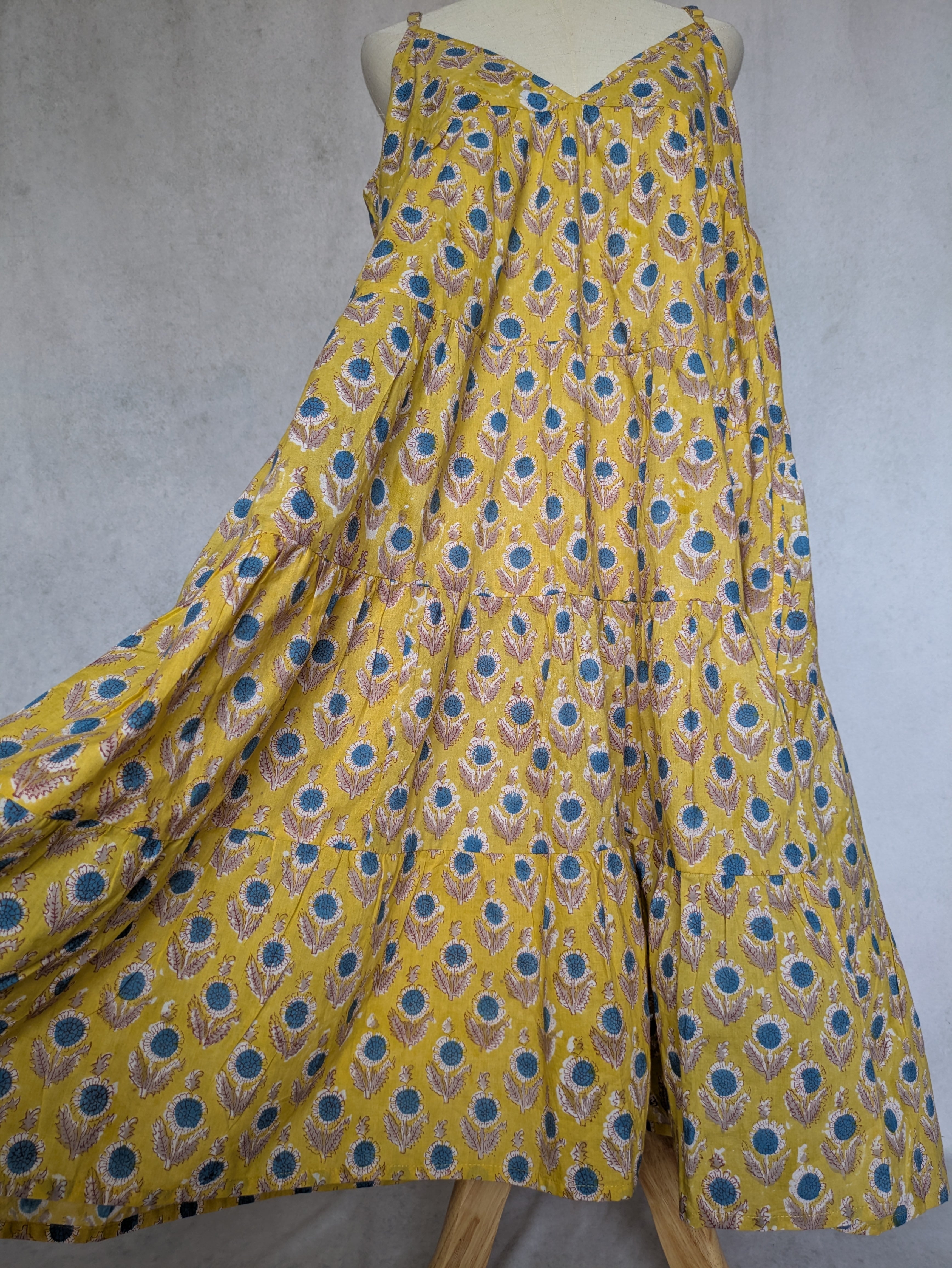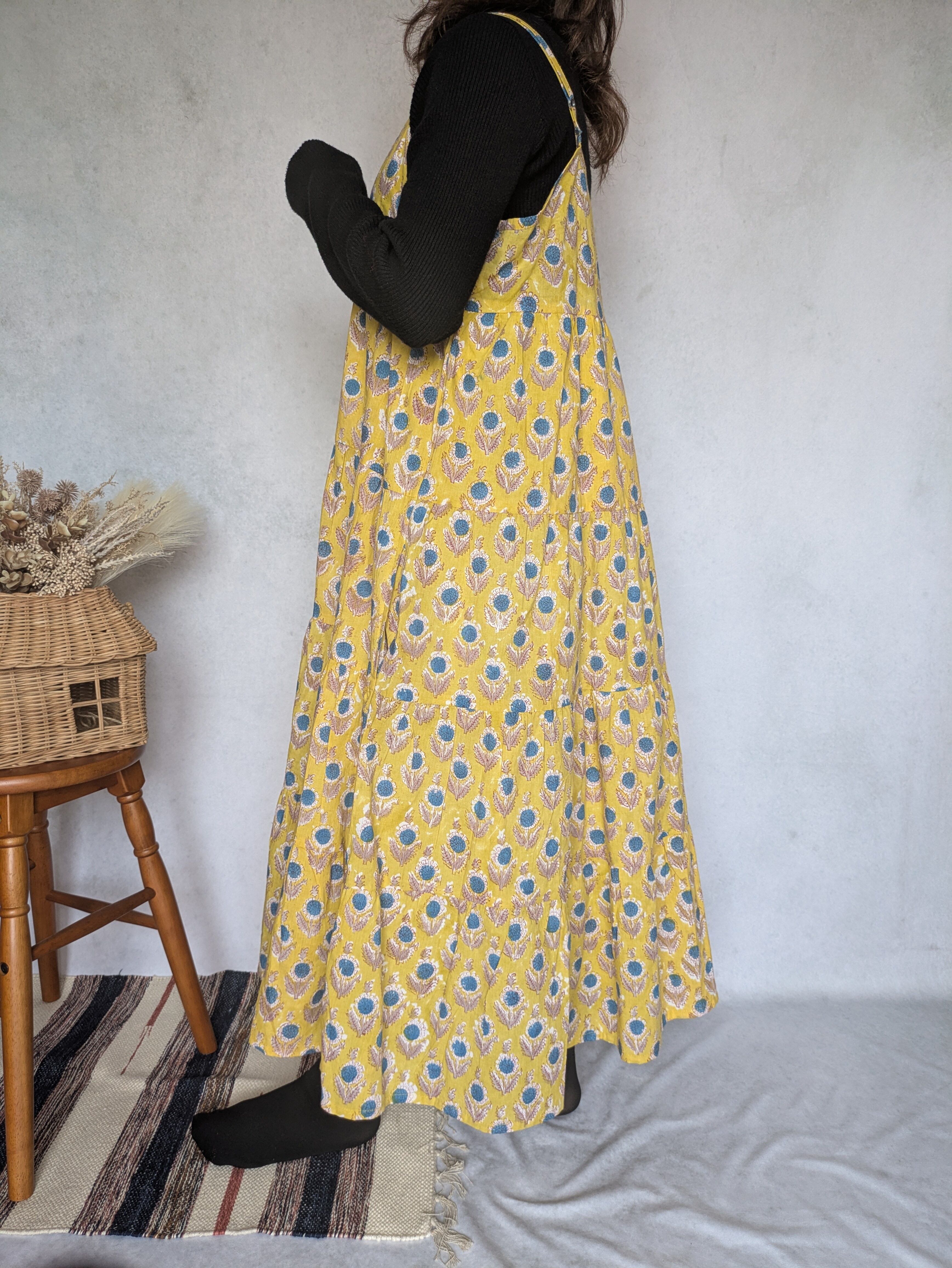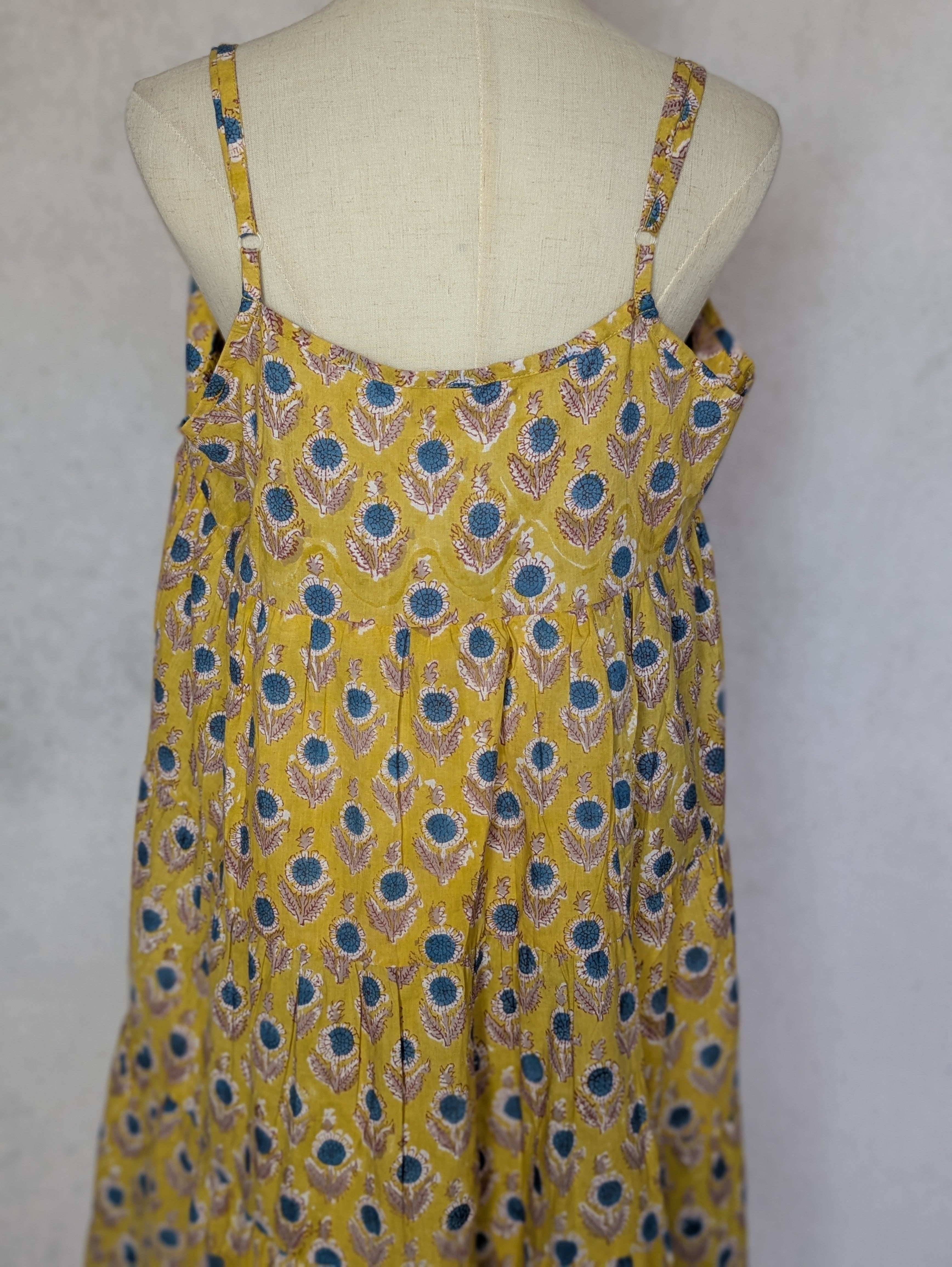 こちらは、インドの伝統工芸であるハンドブロックプリントで作られたワンピースです。