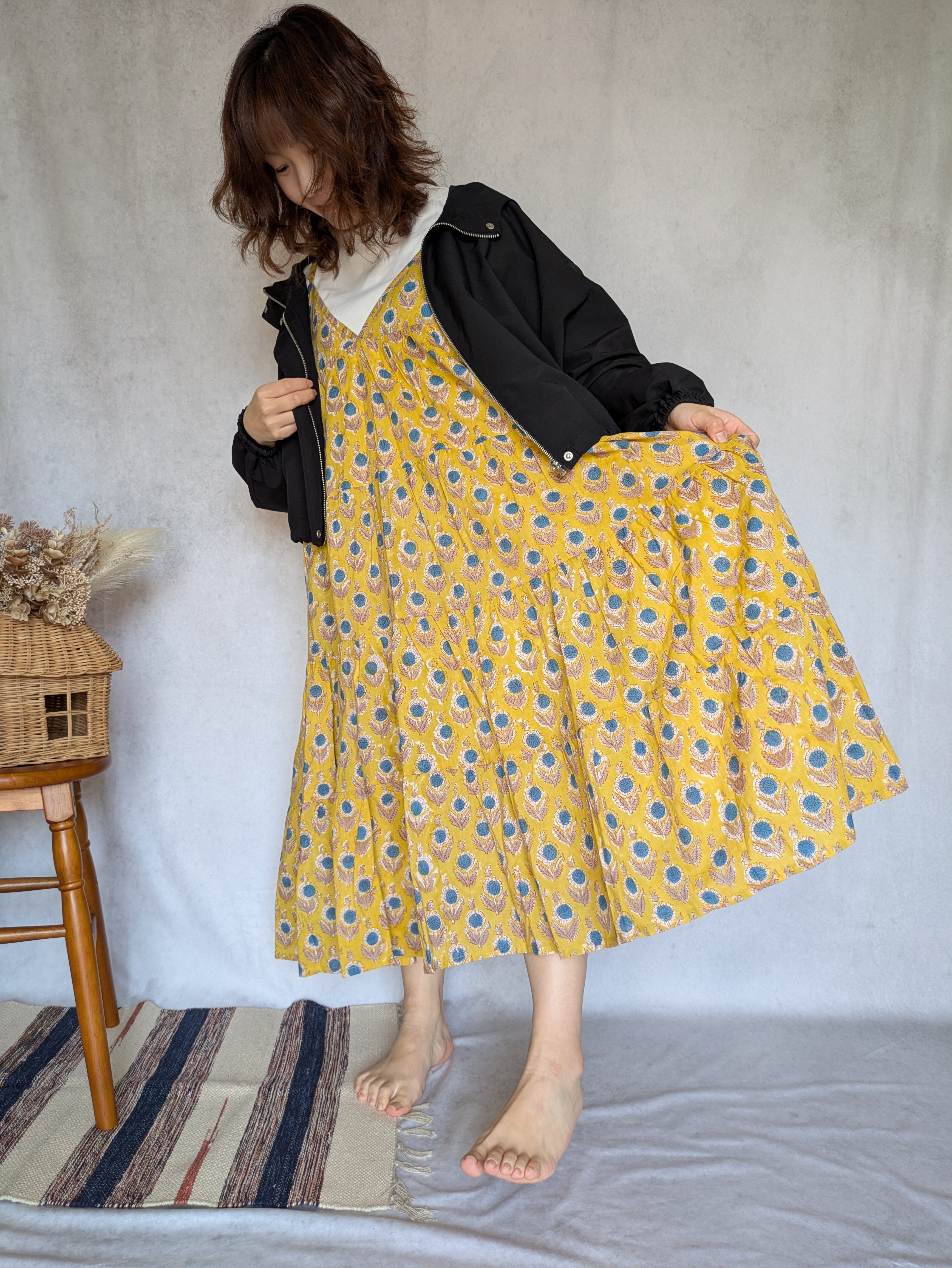 なかなか合うサイズ感のインド綿ワンピースが見つからなかった、そんな低身長の悩める方向けのワンピースになります♡