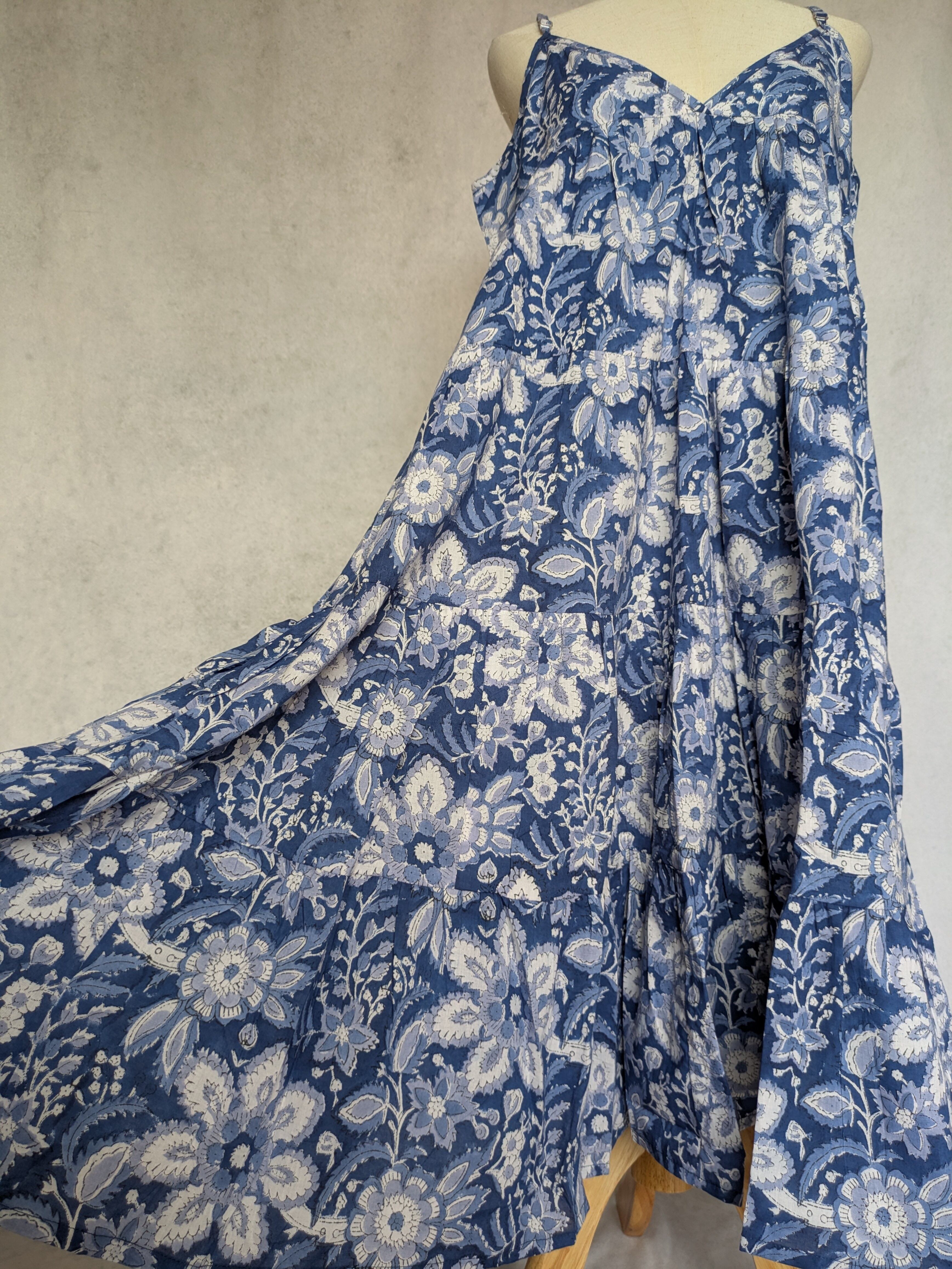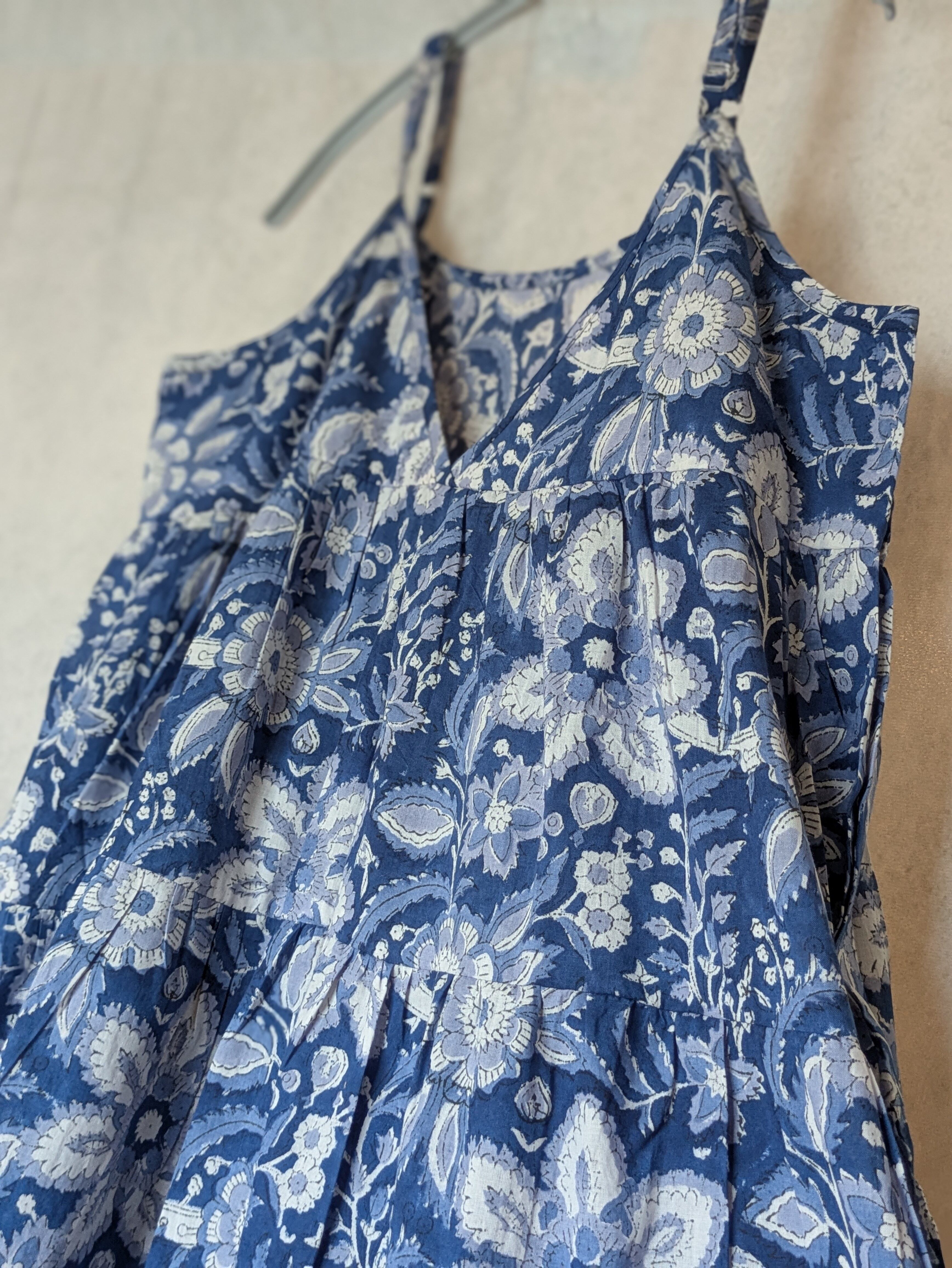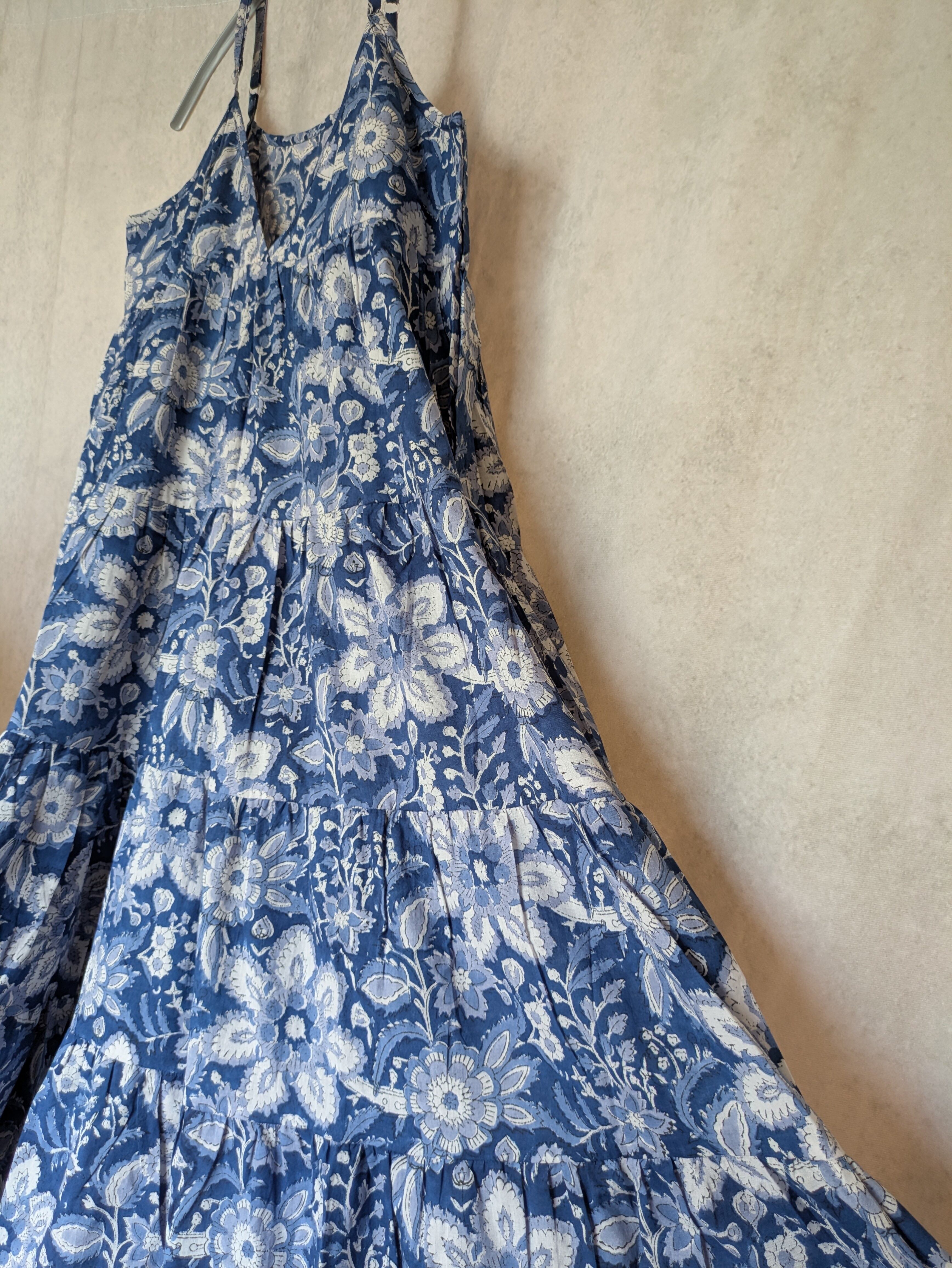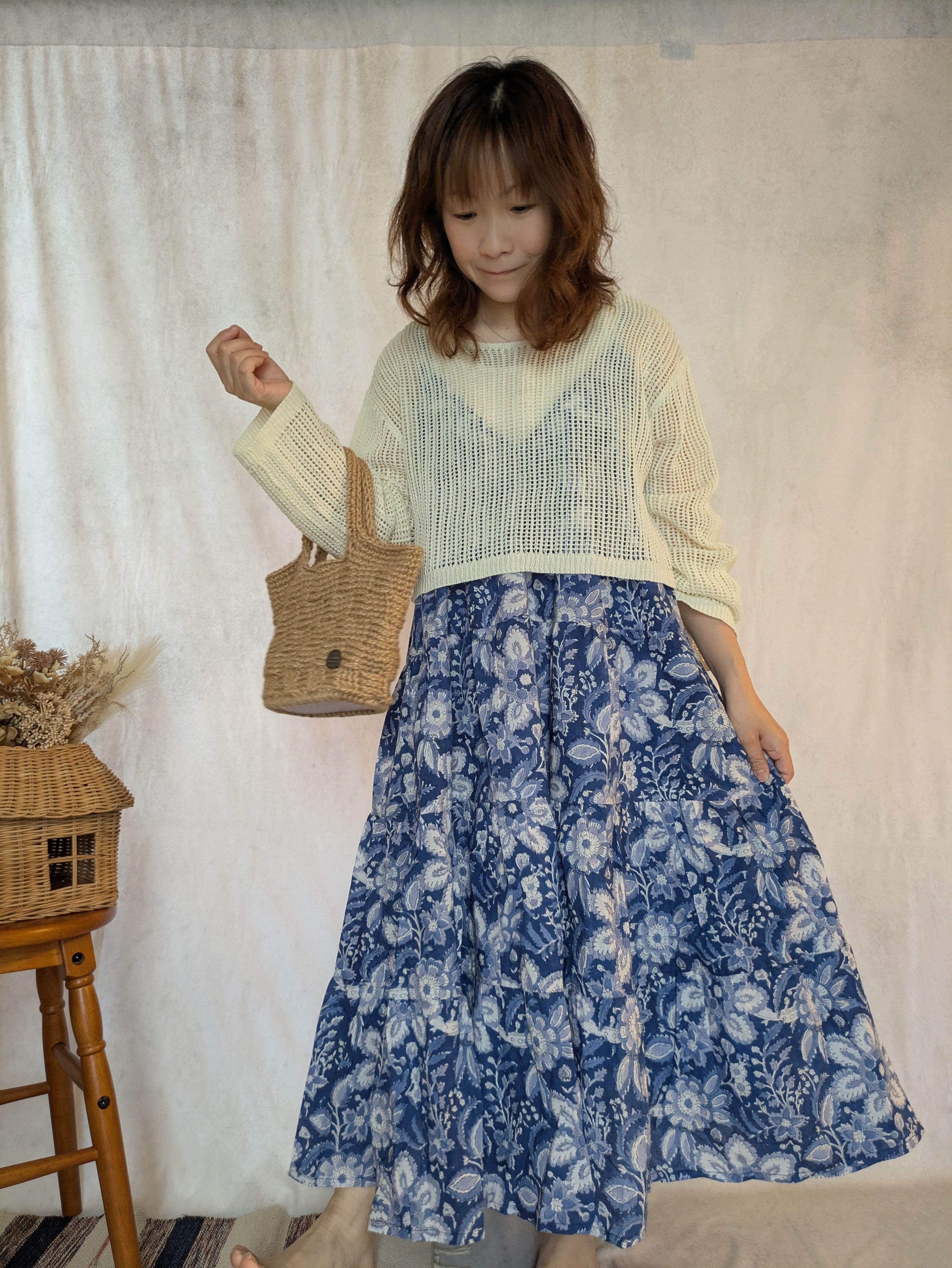こちらは、インドの伝統工芸であるハンドブロックプリントで作られたワンピースです。