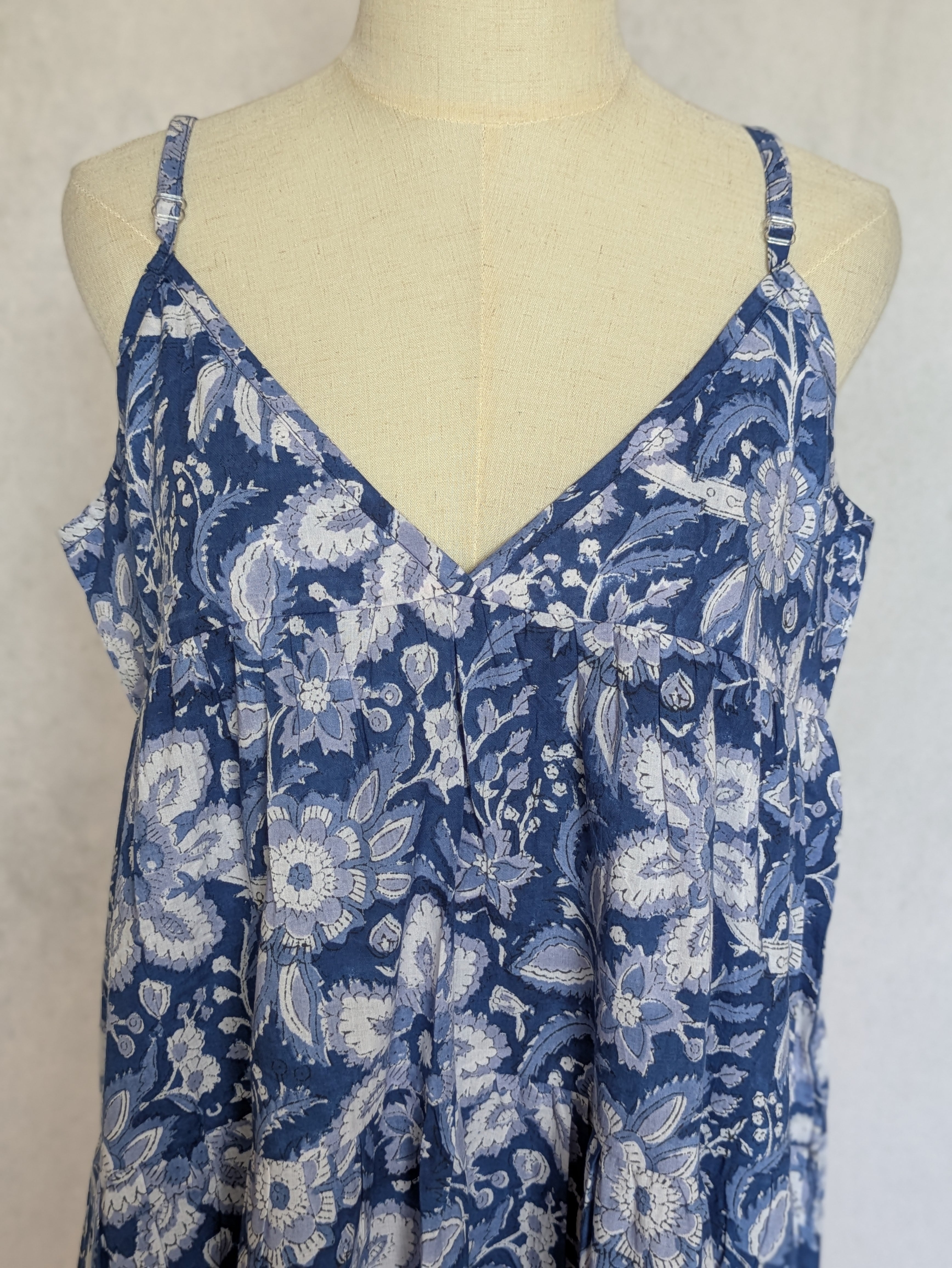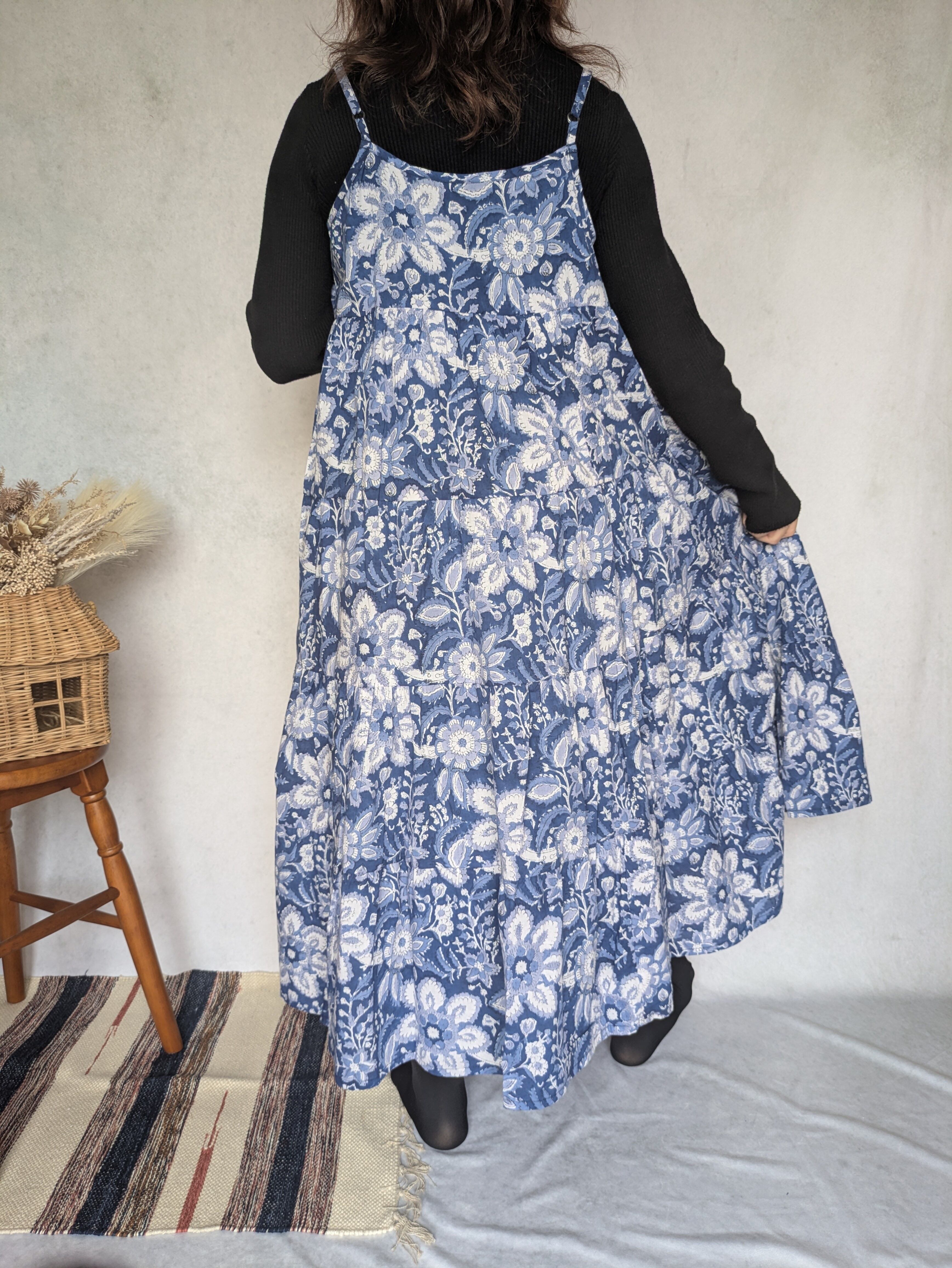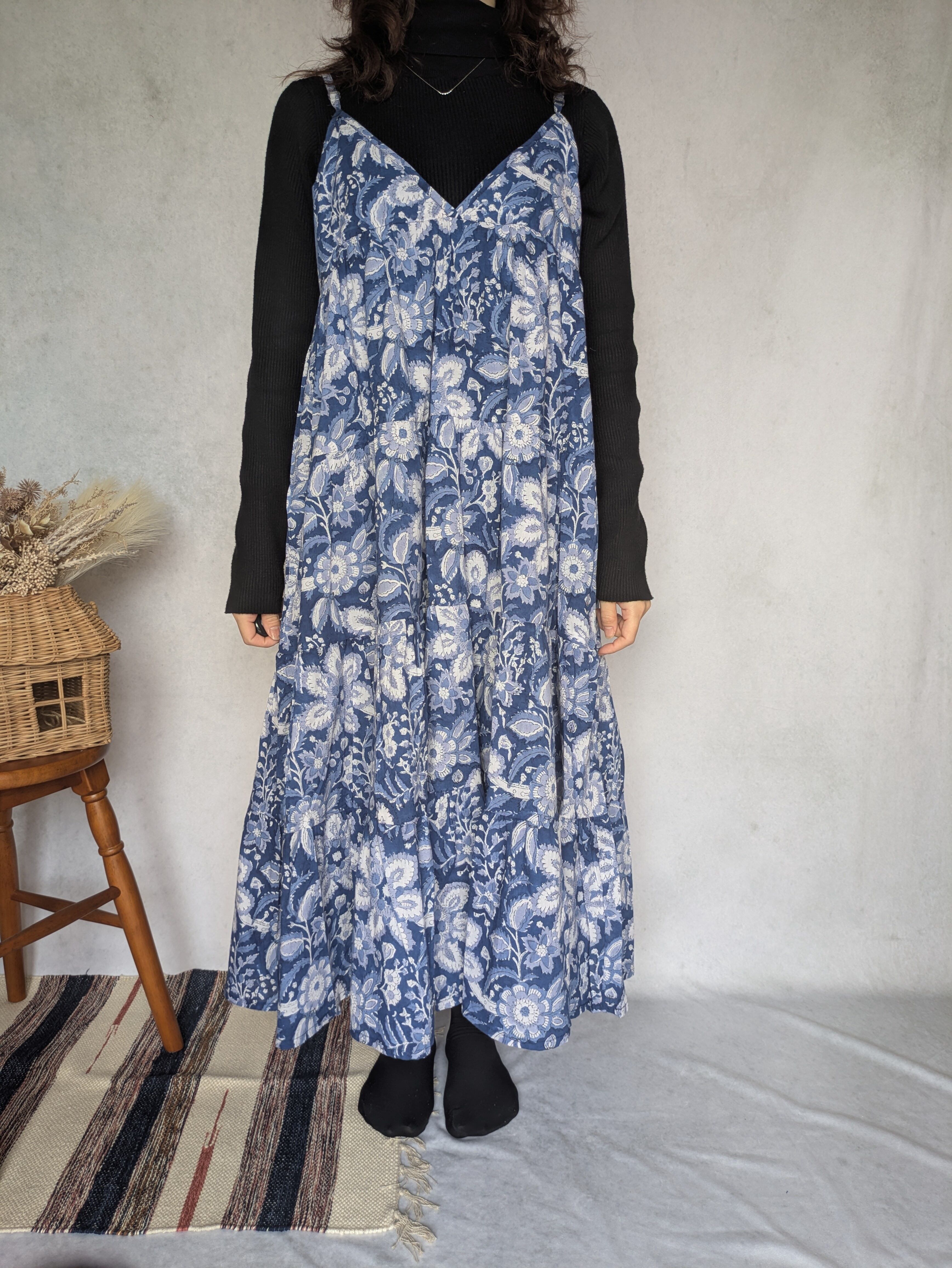 こちらは、インドの伝統工芸であるハンドブロックプリントで作られたワンピースです。