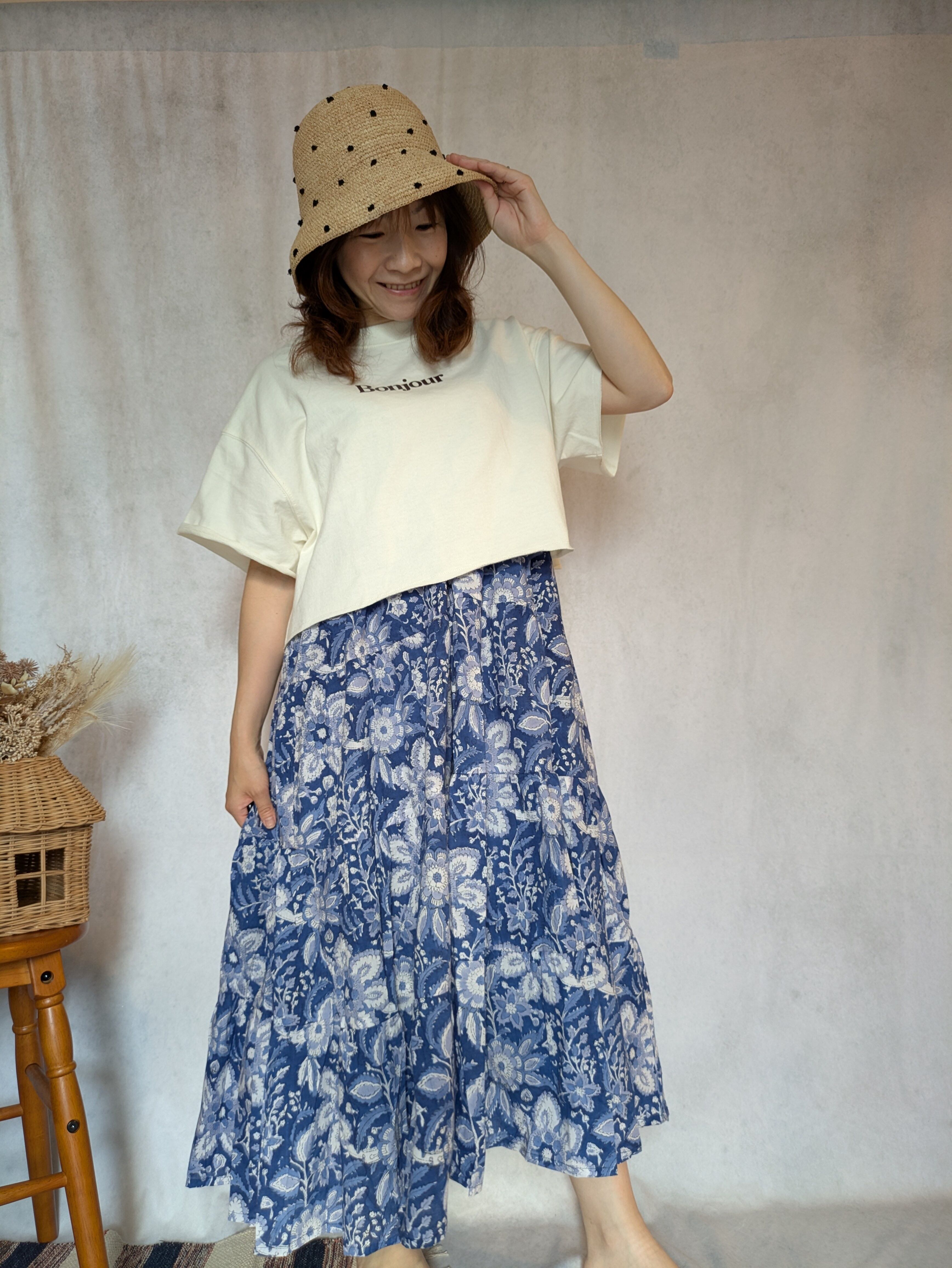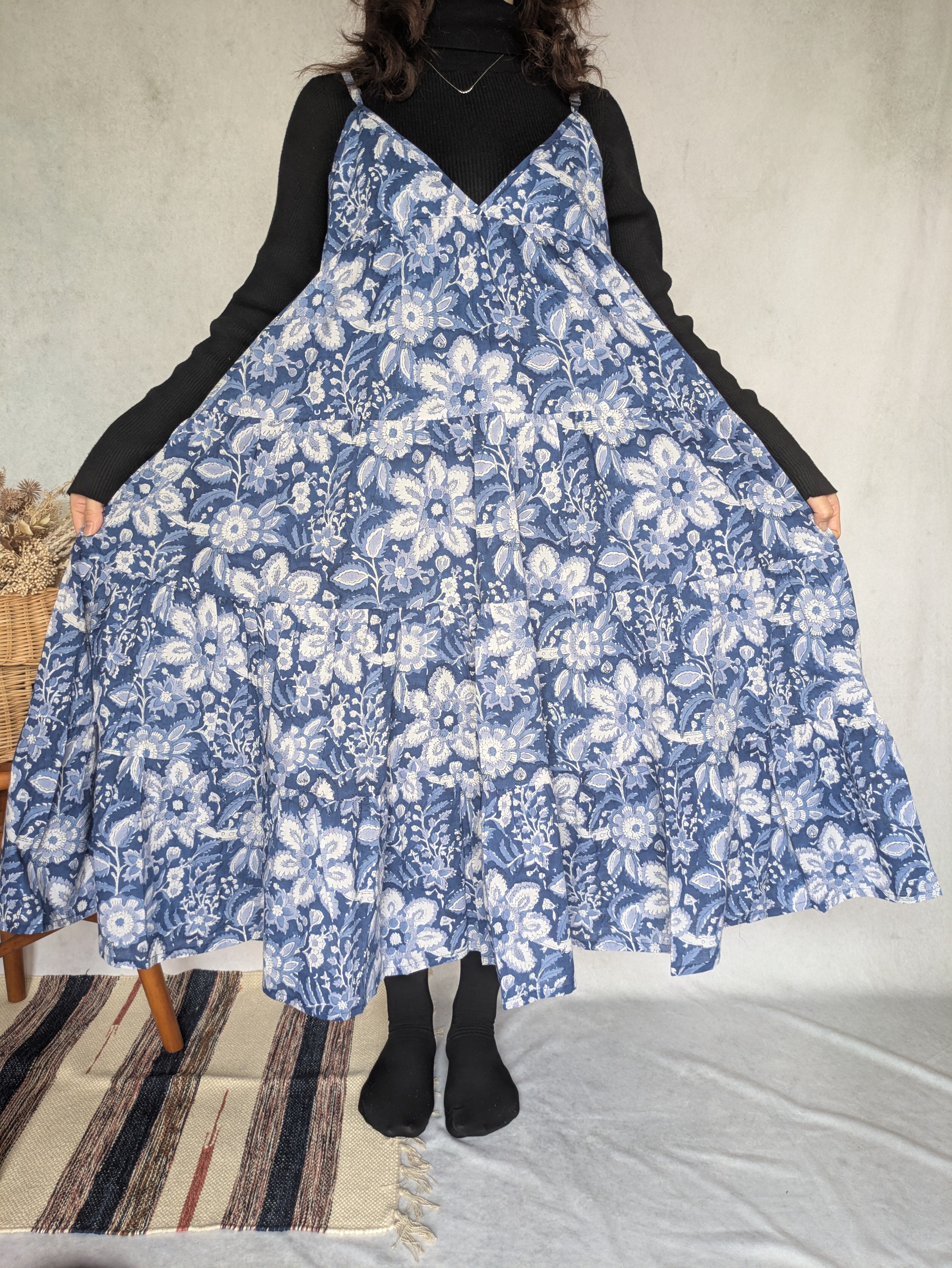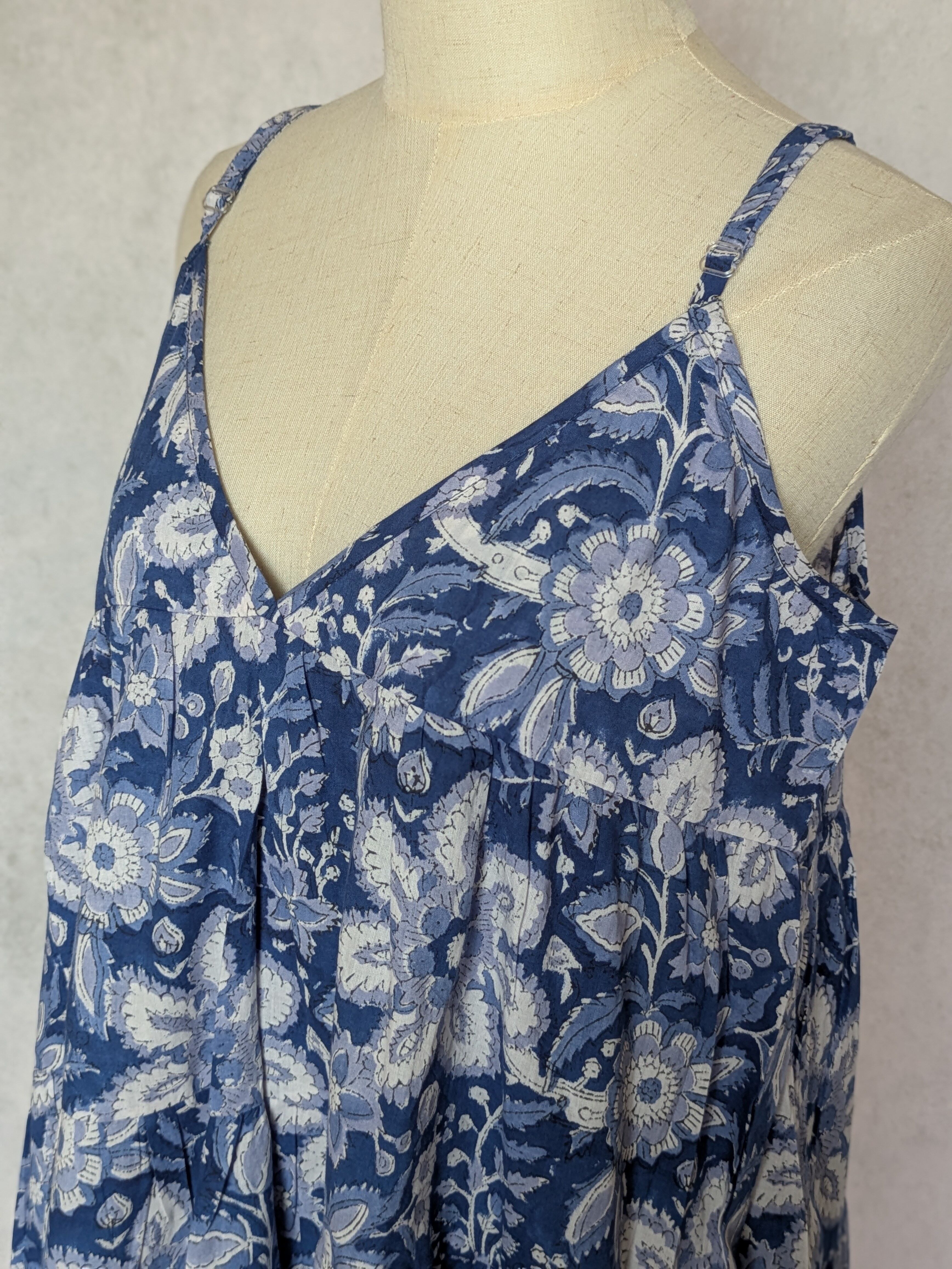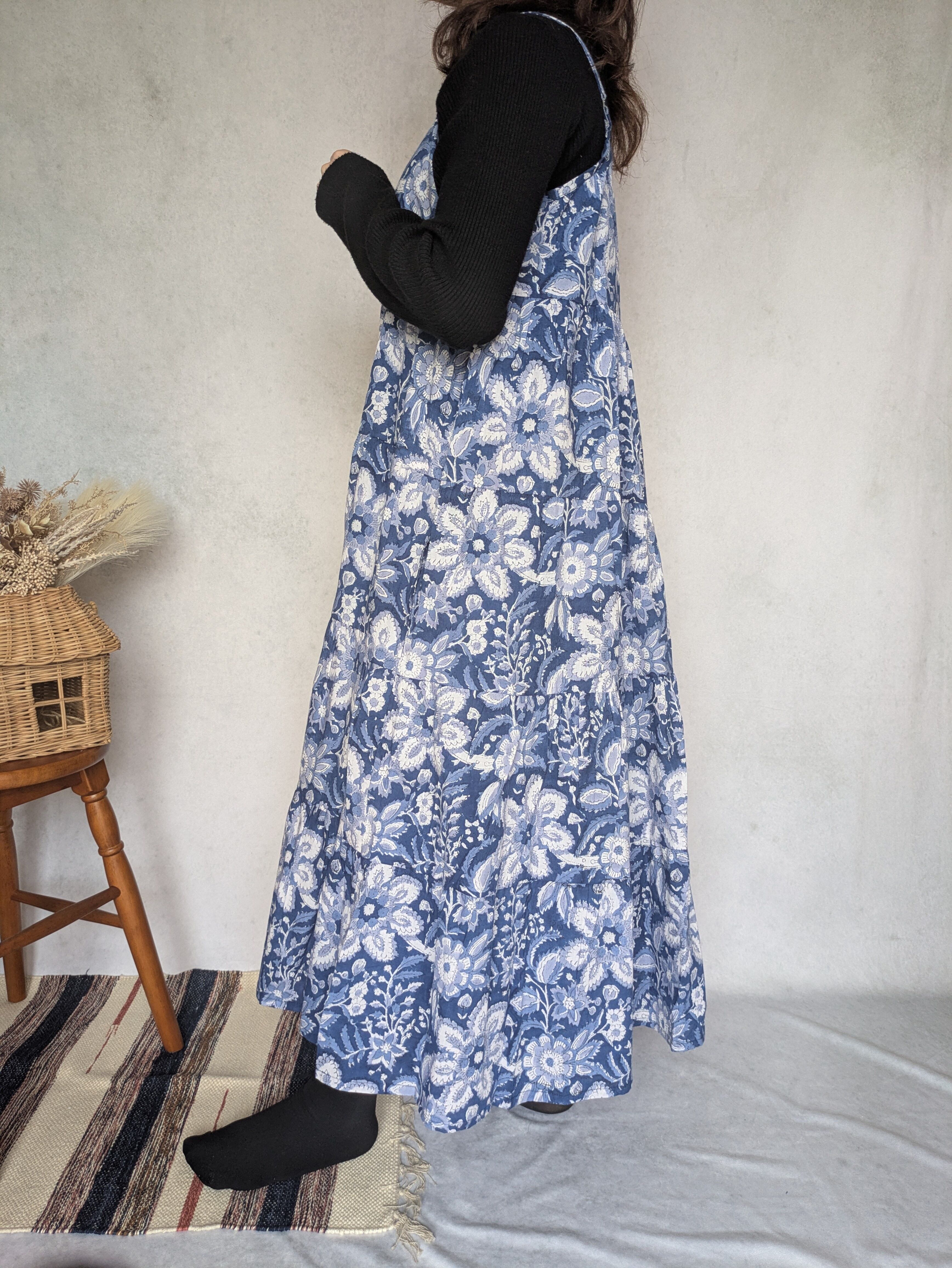 こちらは、インドの伝統工芸であるハンドブロックプリントで作られたワンピースです。