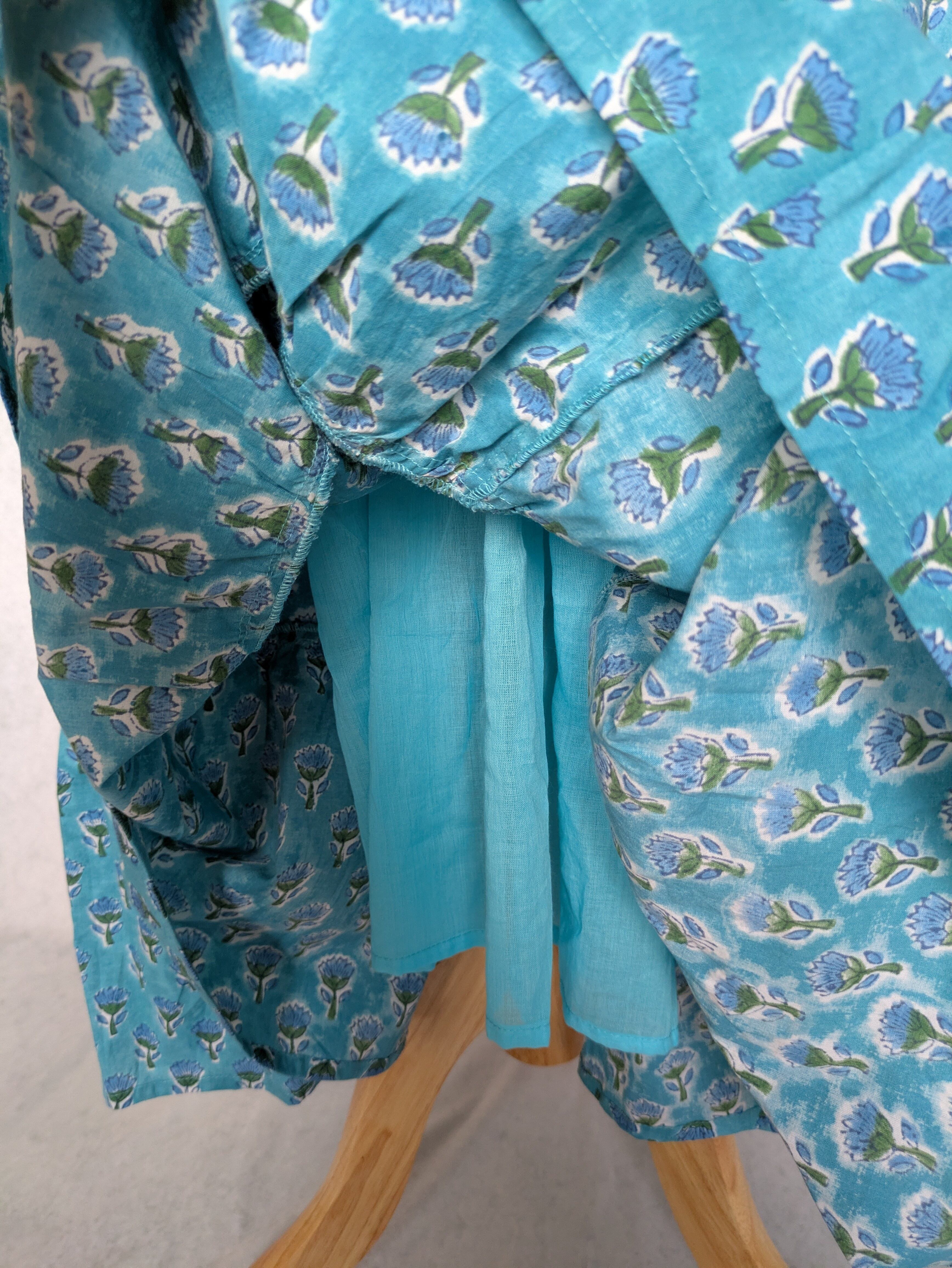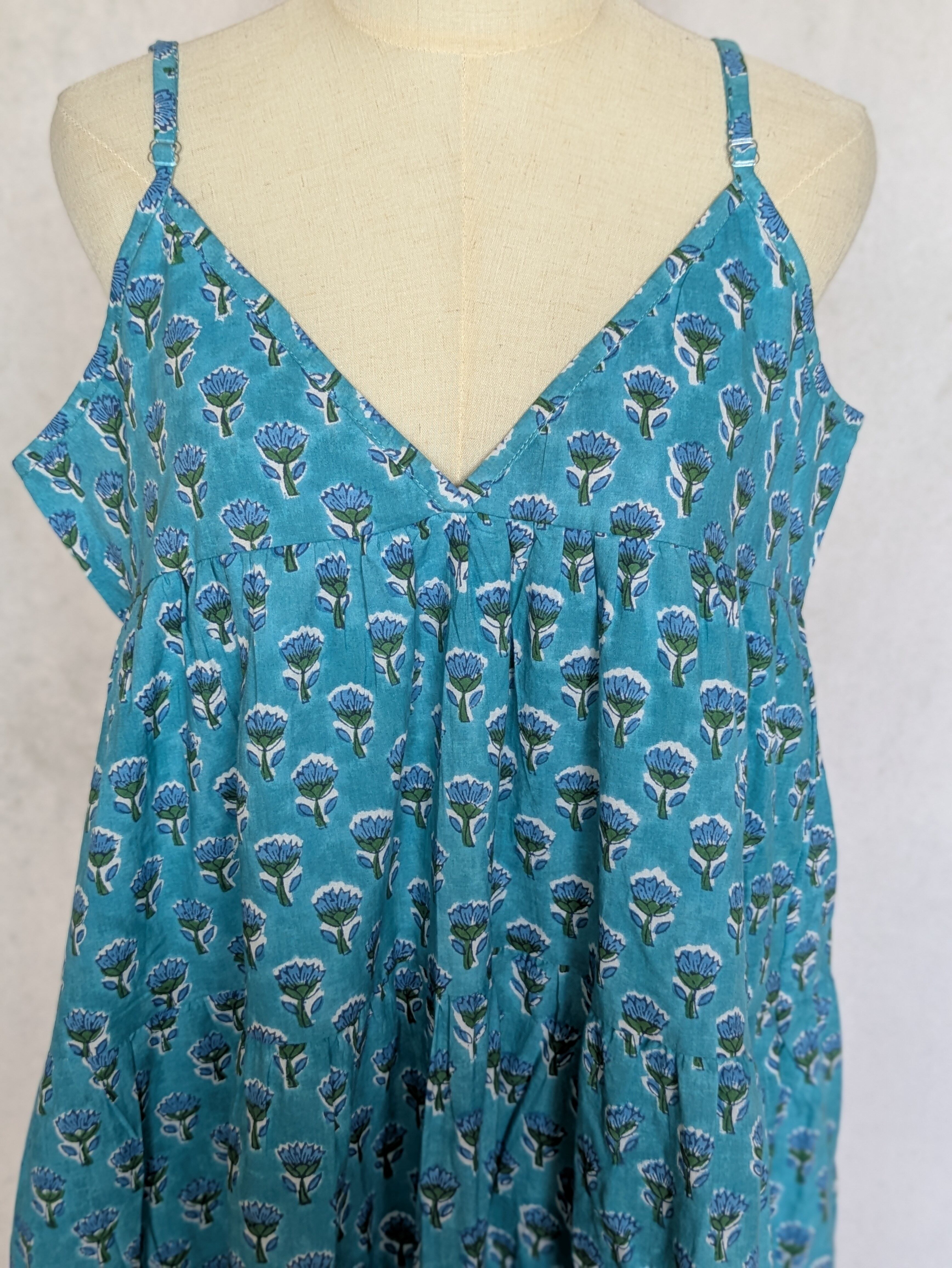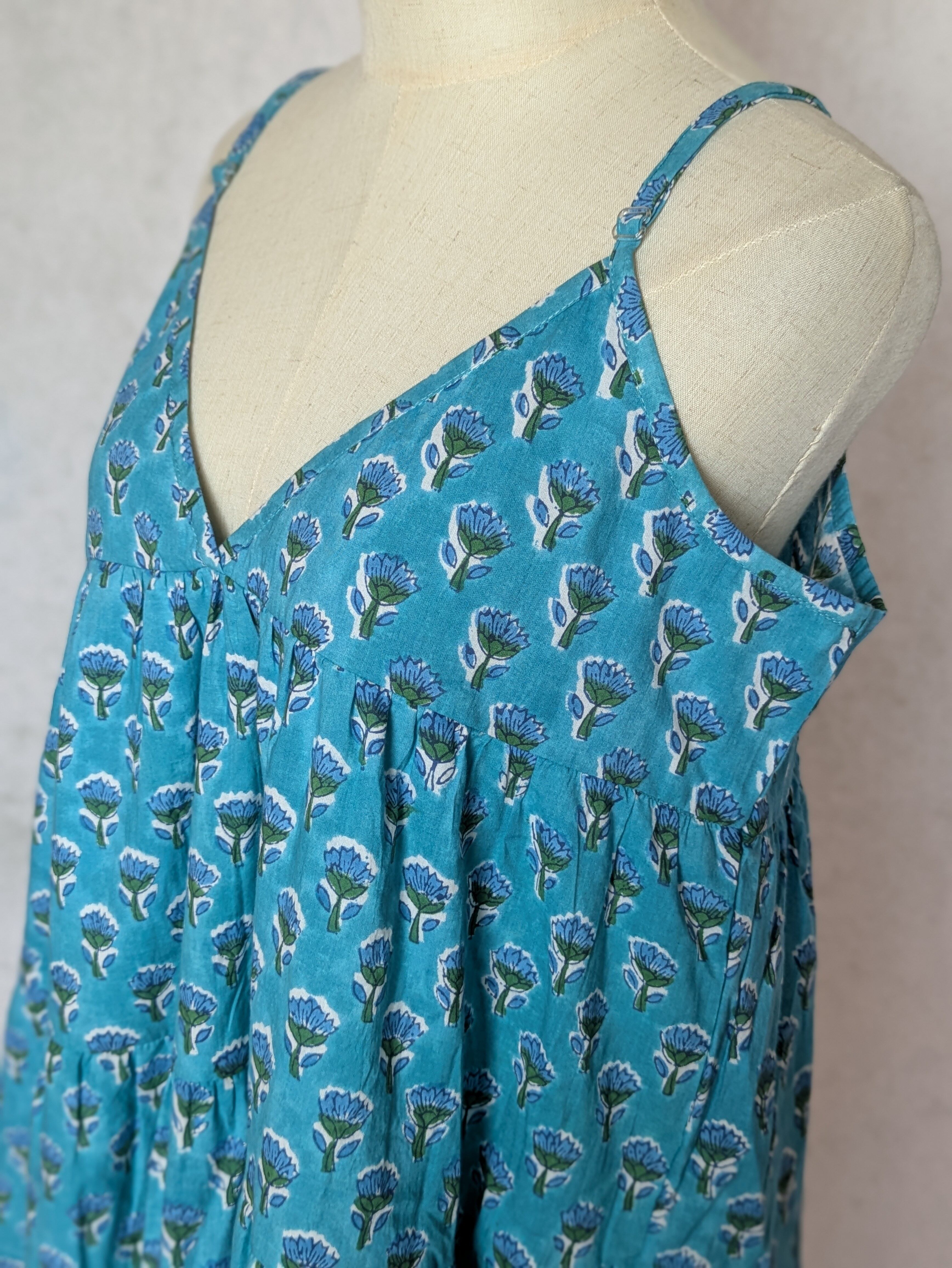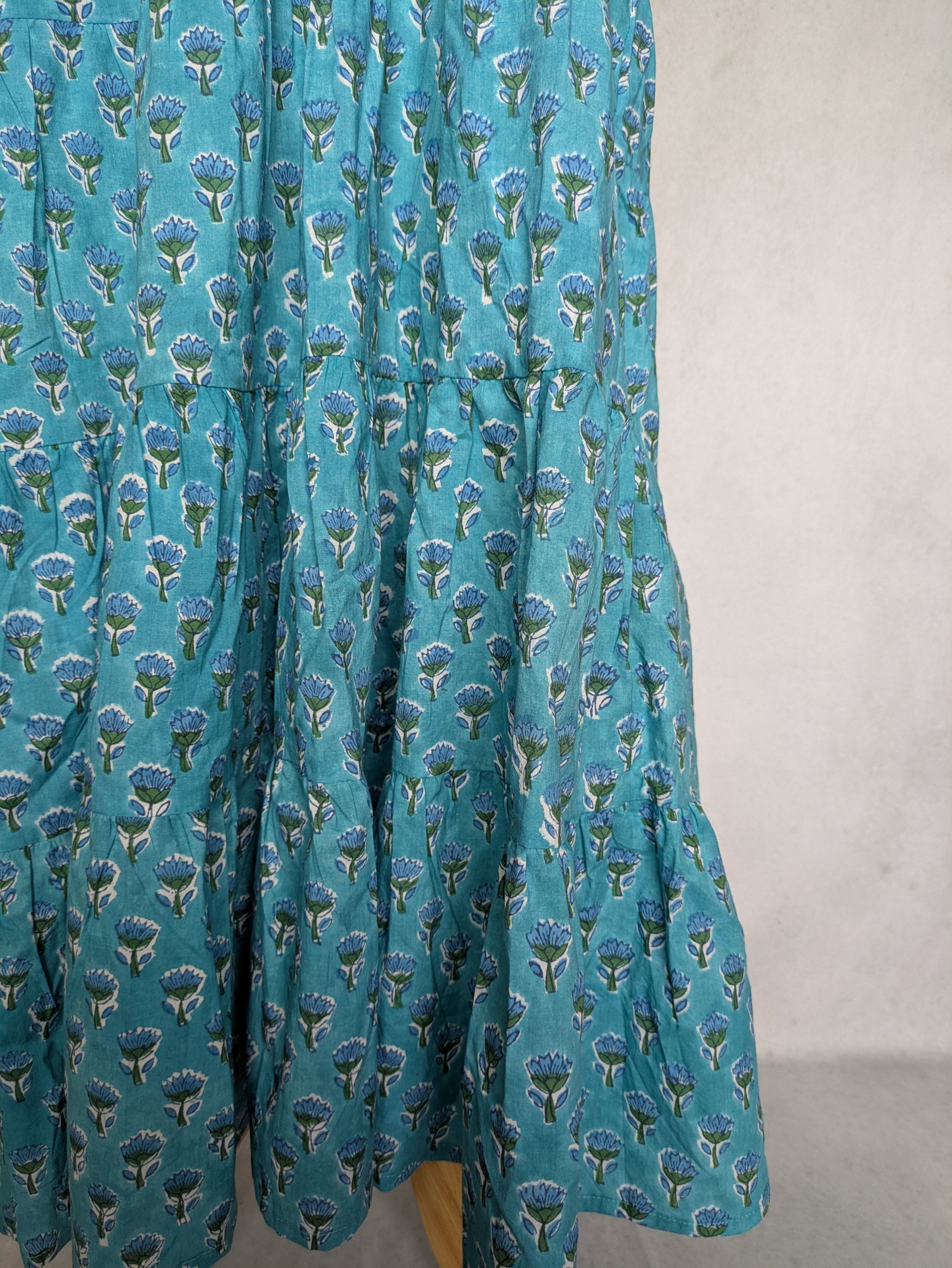こちらは、インドの伝統工芸であるハンドブロックプリントで作られたワンピースです。